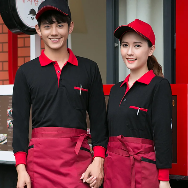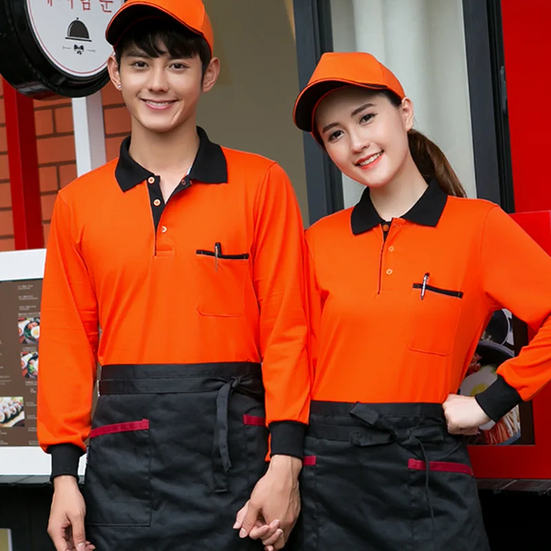 Customizable Men's & Women's Long-Sleeved T-Shirts Autumn Winter Western Restaurant Work Uniforms for Hot Pot Milk Tea Serving