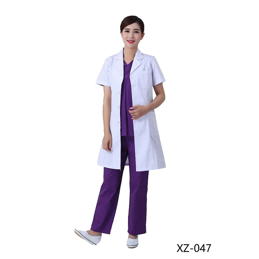 Unisex Dean Jacket Dress White Spa Beauty Pharmacy Coat for Hospital Nurses Uniform Clothing Cozy Attire Twill Fabric Needle