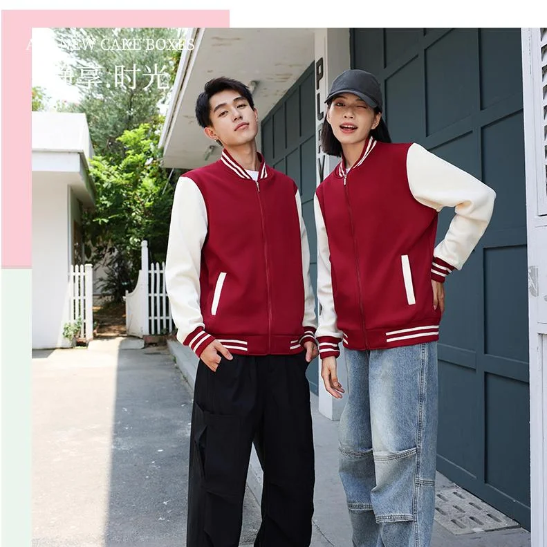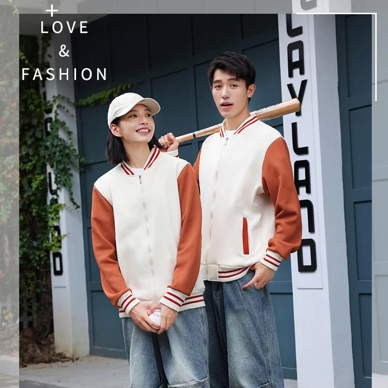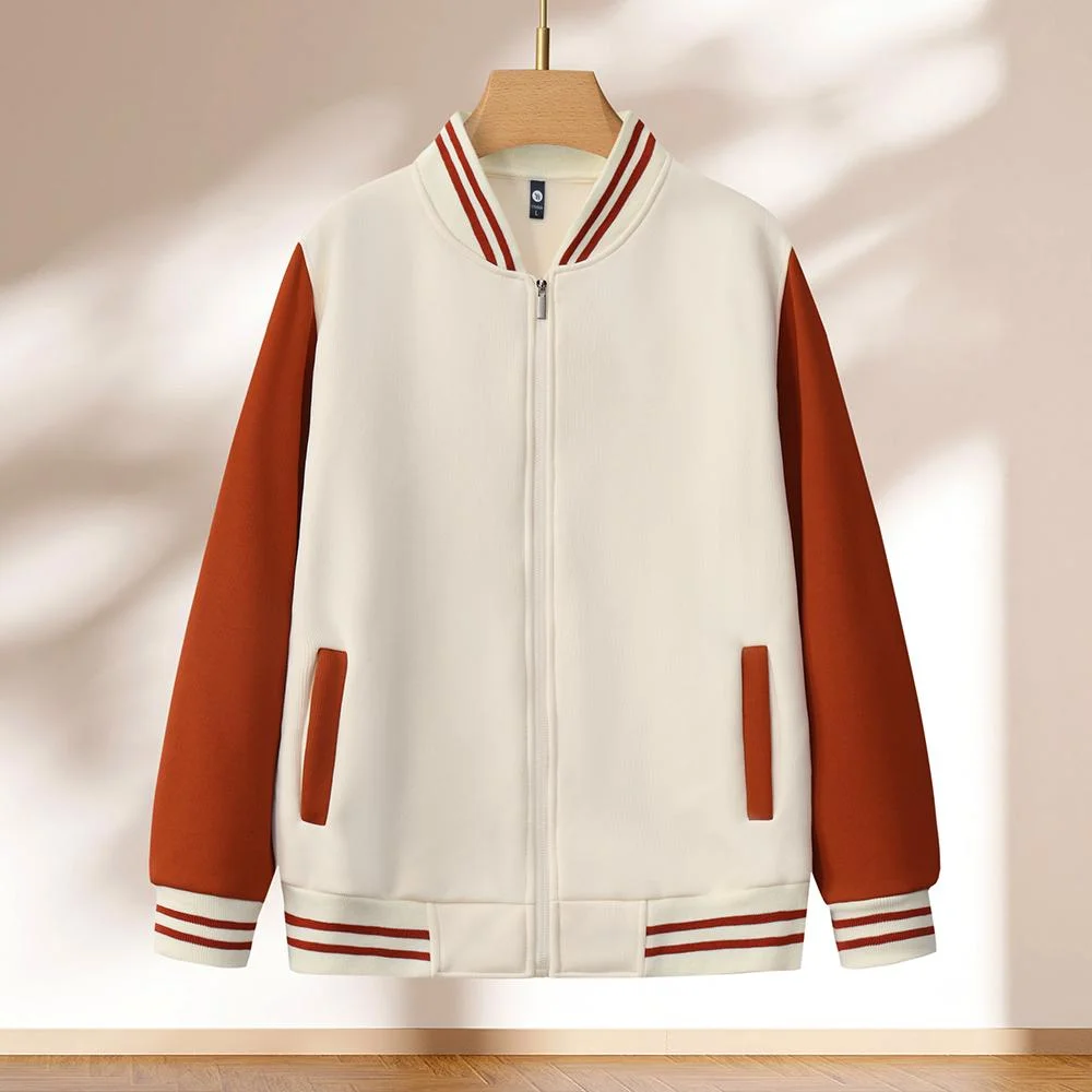 Unisex Customizable Zip-Up Baseball Jacket 100% Polyester Casual Hoodie Sports Coat with Stand Collar for Autumn Season