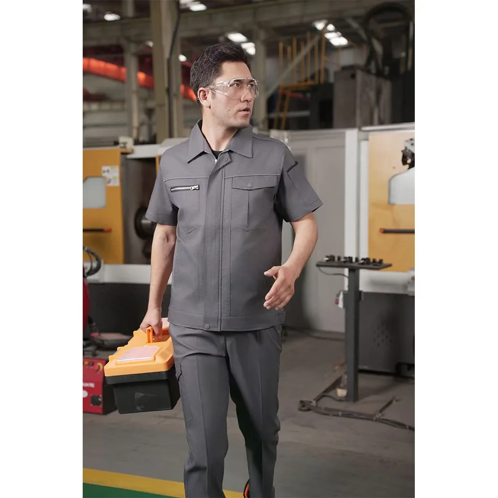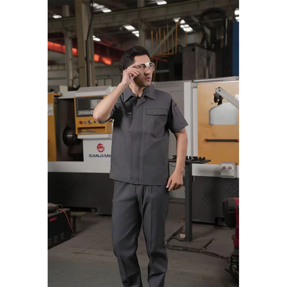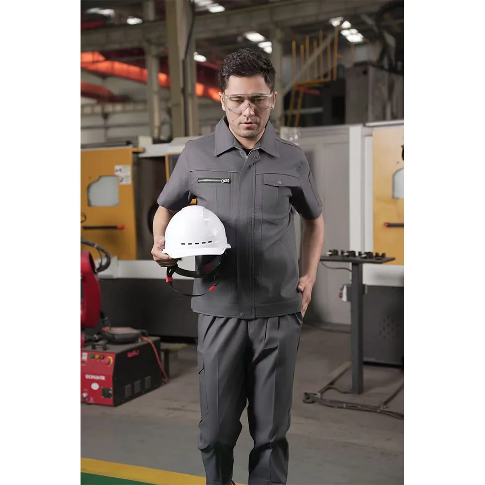 High Quality Summer Short-Sleeved Workwear Men'S Work Clothes Shirt Wear-Resistant Work Uniform Top
