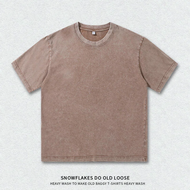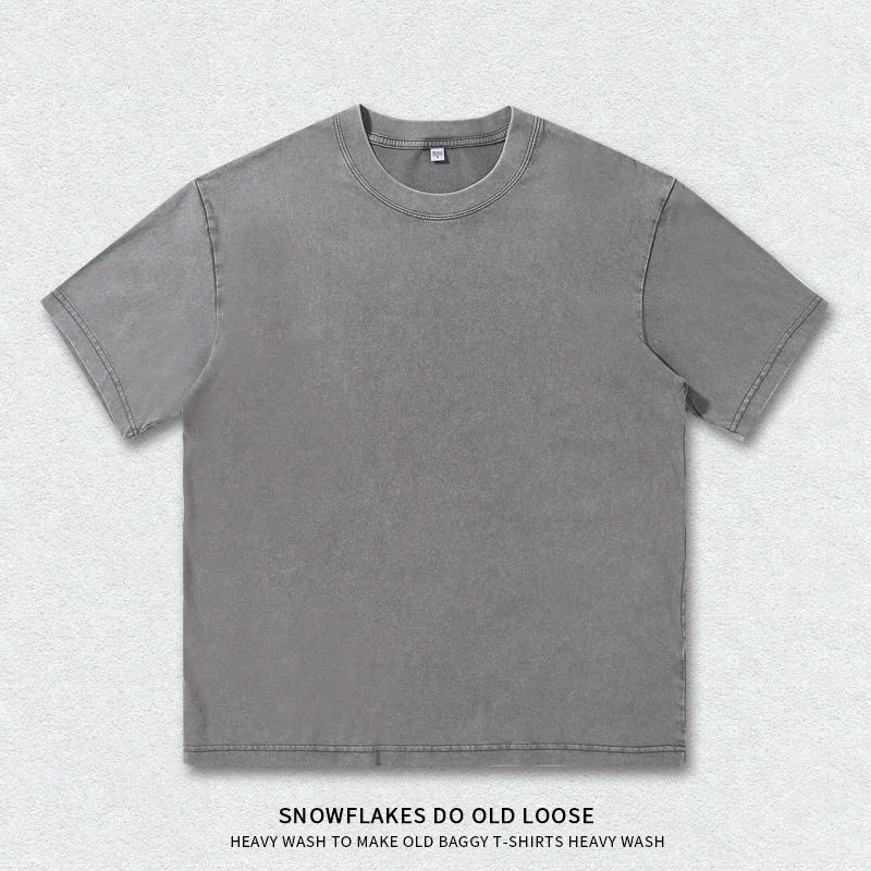 Unisex Retro 230G Heavyweight 100% Cotton Short Sleeve Oversized Washed T-Shirt with Solid Pattern Knitted Fabric