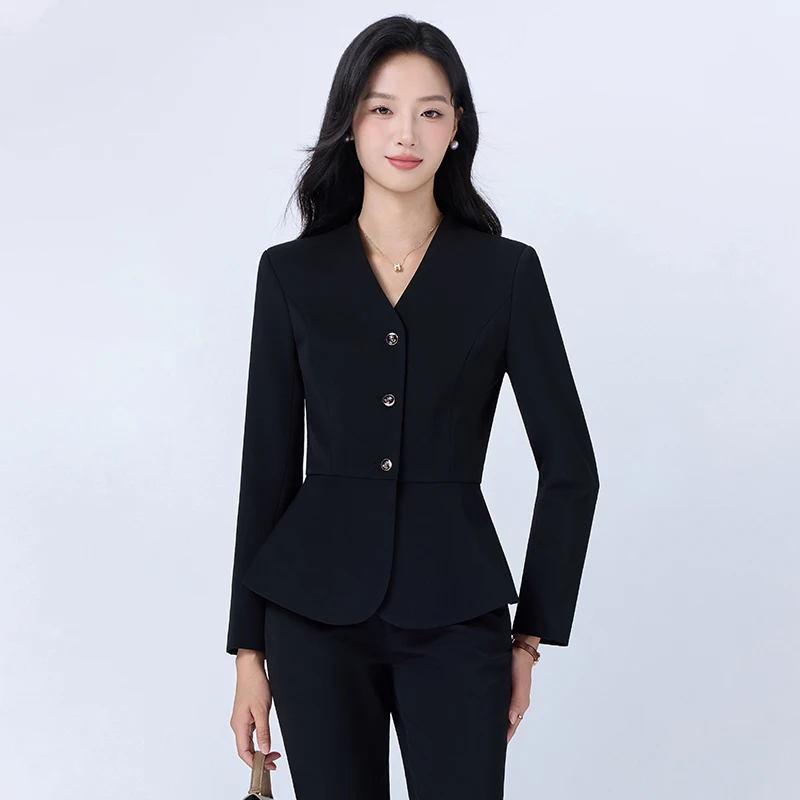 Spring and Autumn Fashion Women's Formal Coat V-neck Lapel Button Pocket Suit Jacket 2026 New Women's Suit Jacket