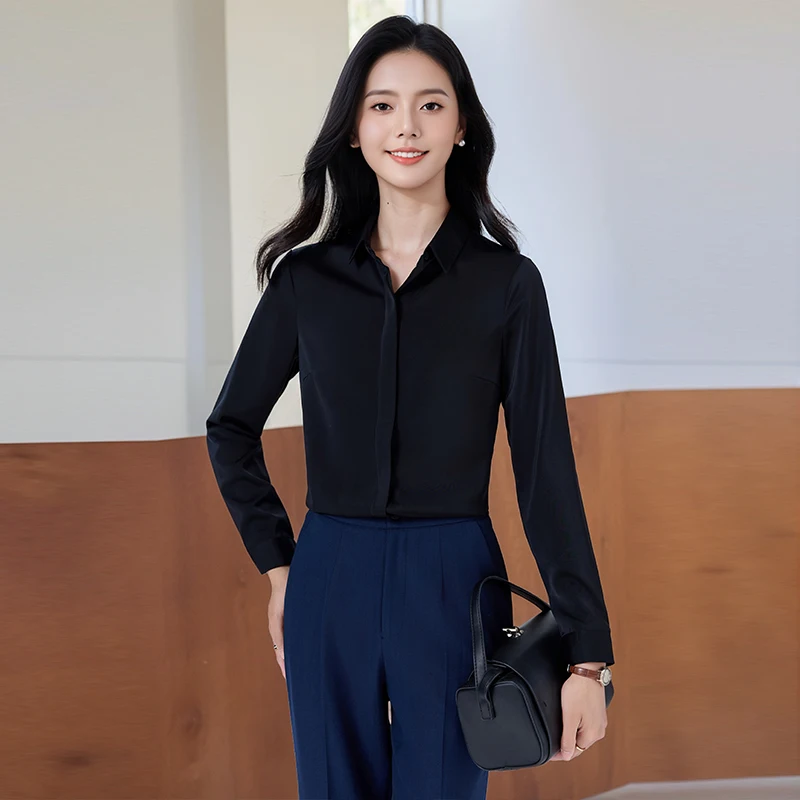 Wholesale Custom 2026 Long Sleeve Women's Shirt Lapel Plus Size Women's Shirt