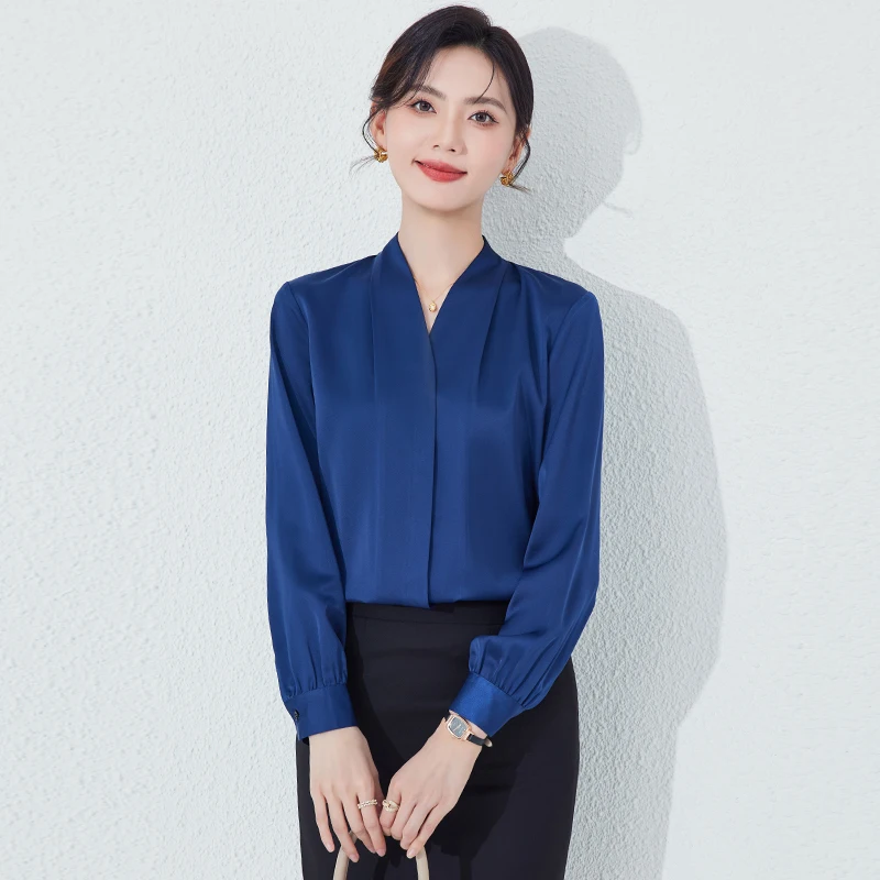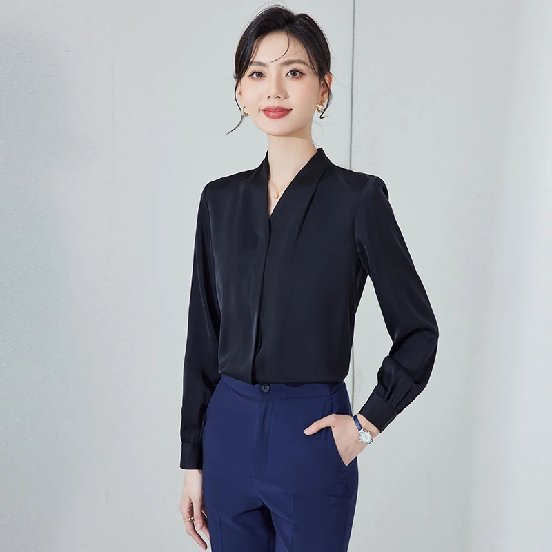 Professional Women's White Long-sleeved Crew Neck with Button-down Detailing, Suitable for Commuting and Formal Work Wear