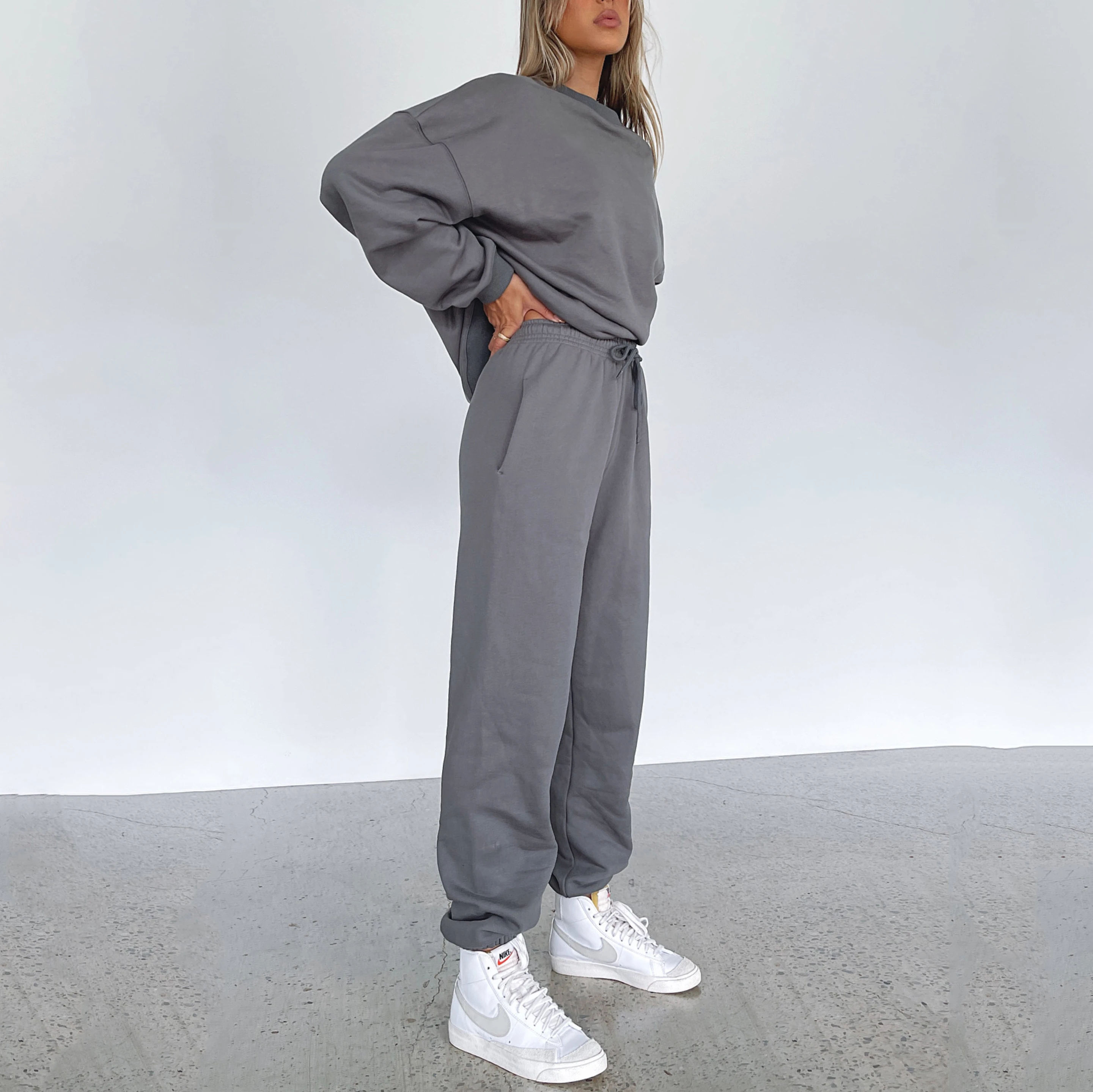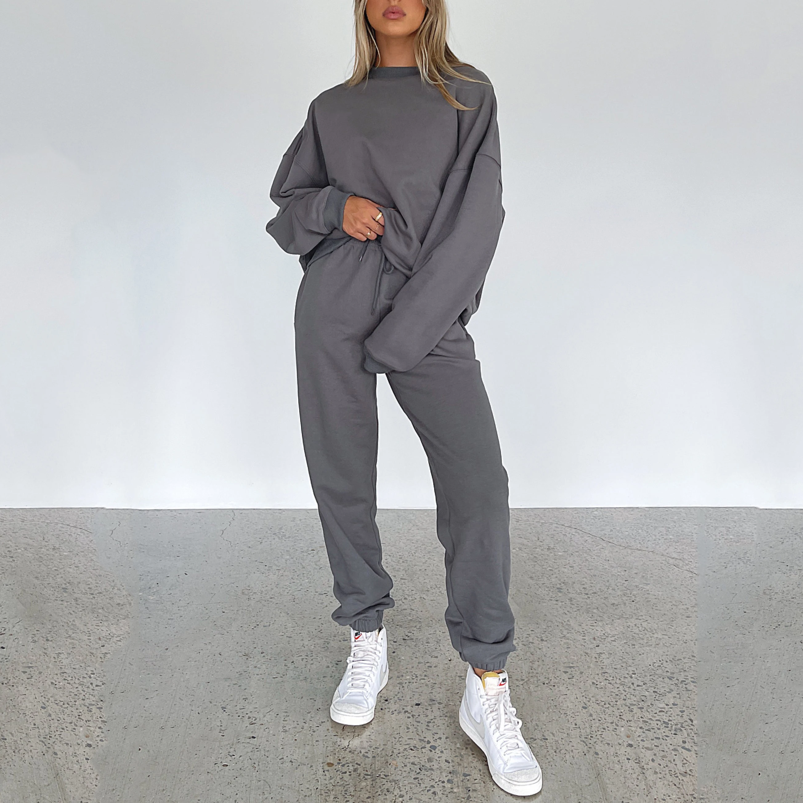 Custom Solid Color Two-Piece Joggres Set Full-Length Women Hoodie Pullover Sweatshirt Casual Knitting French Terry Fabric