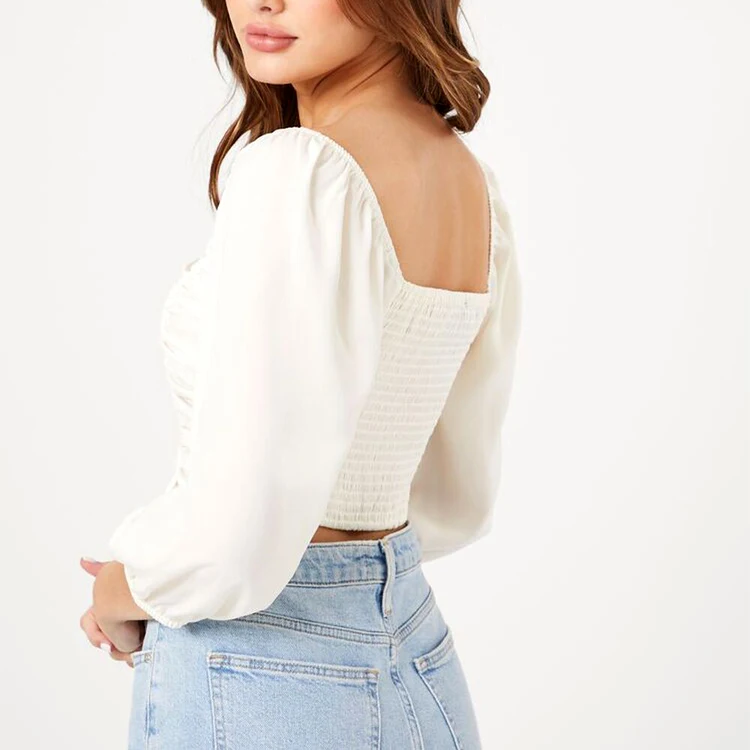 Women's Ruffle Short Sleeve Tie up Front Crop Top Smocked Off Shoulder Wrap Blouse Vintage Bardot Blouse Top