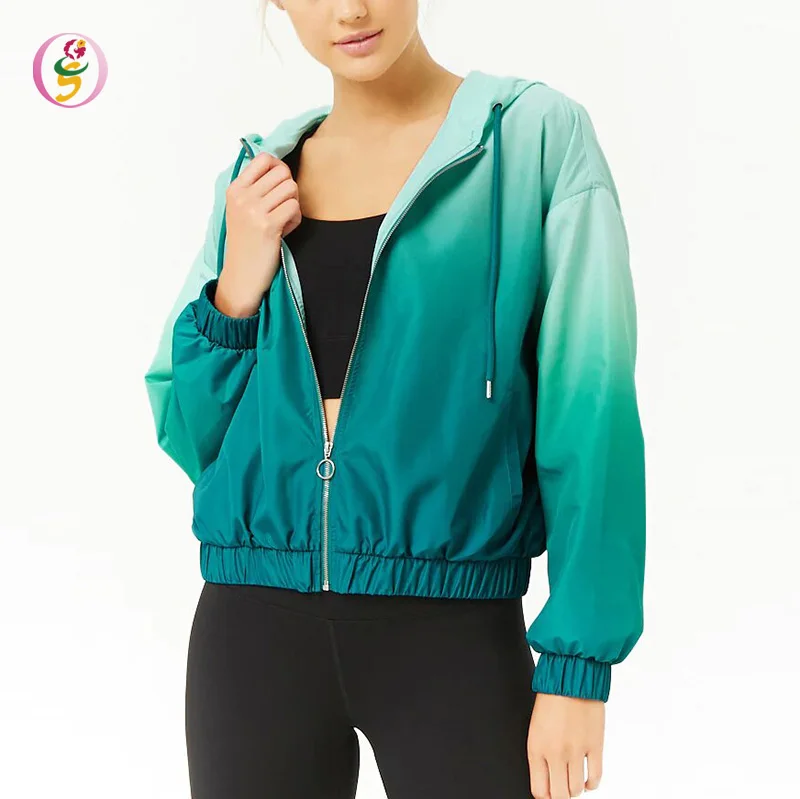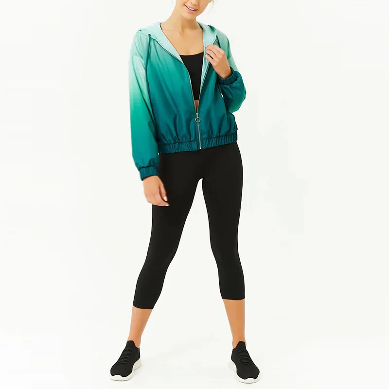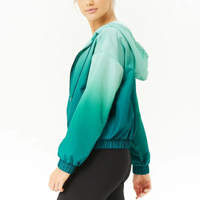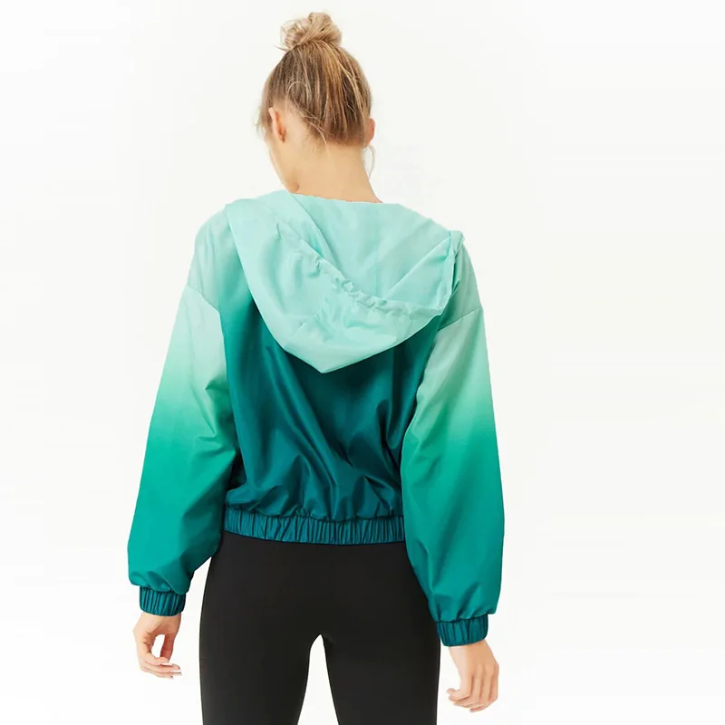 Active Ombre Hoodie Windbreaker Jacket Women Elasticized Trim Sports Bomber Jacket