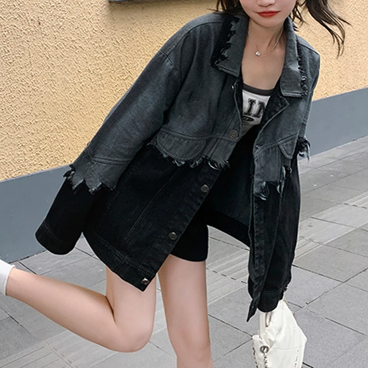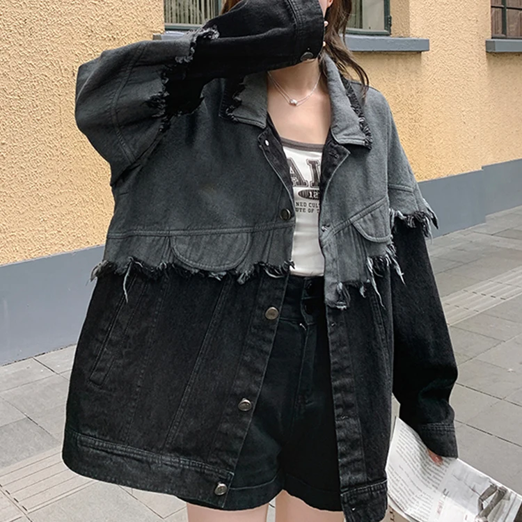 Fashion Women's Loose Washed Patchwork Denim Jacket