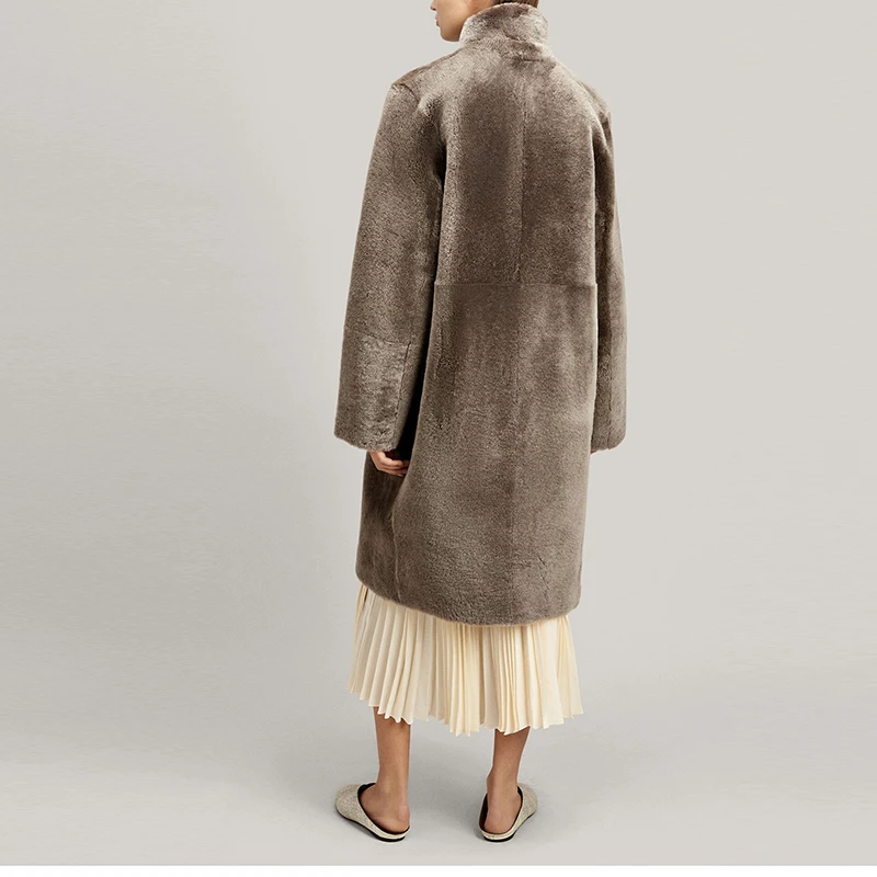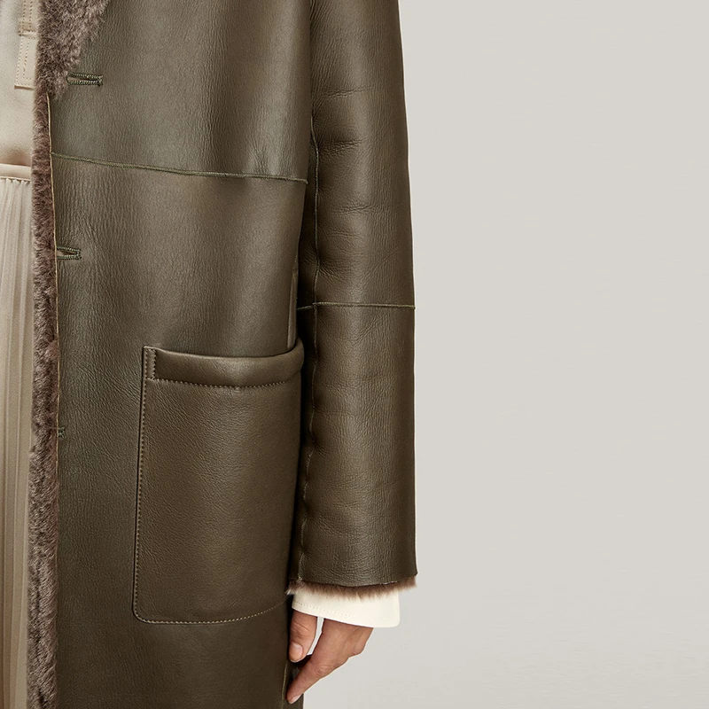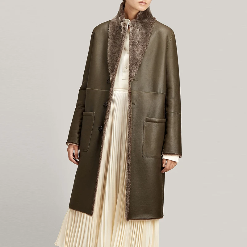 2018 New Design Leather Fur Coat Reversible Soft Shearling Side and Leather Coat