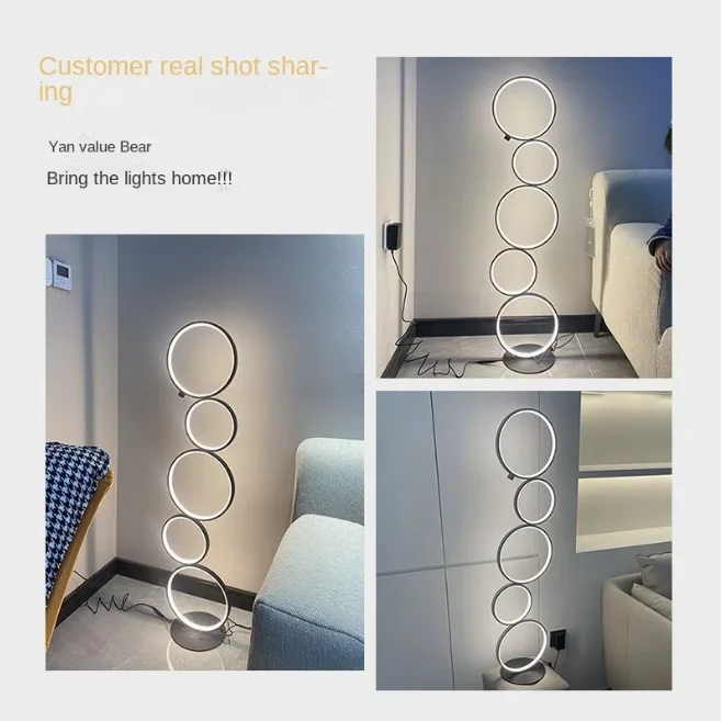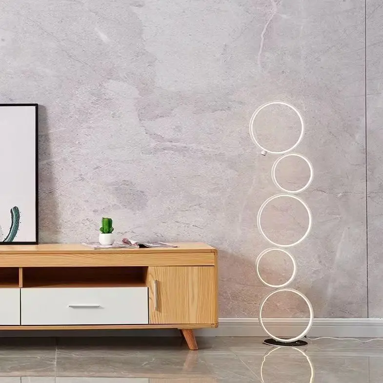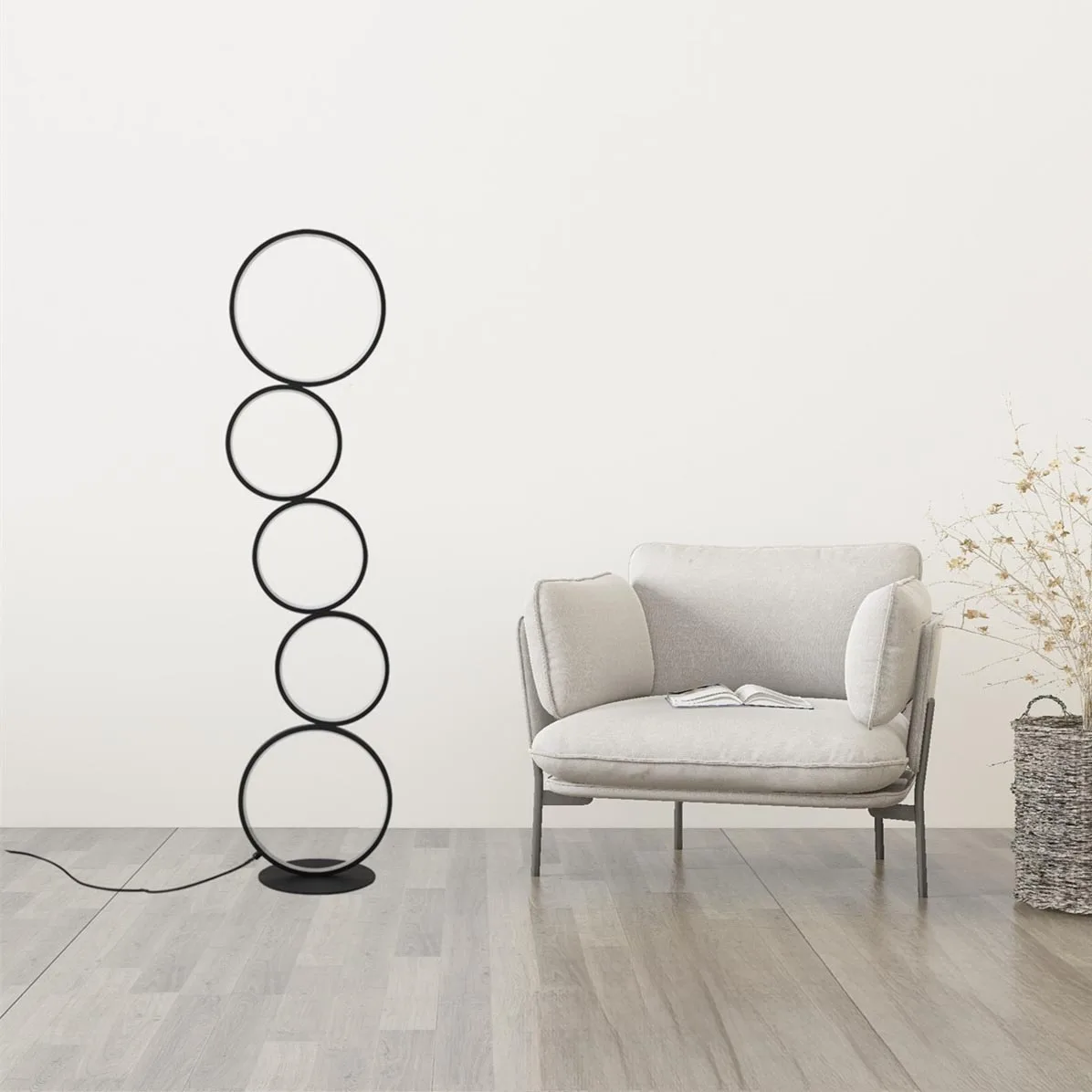 JACKSUN Modern Aluminum 5 Rings Warm White LED Floor Lamp Industrial Five Circle Touch Tall Reading Floor Light