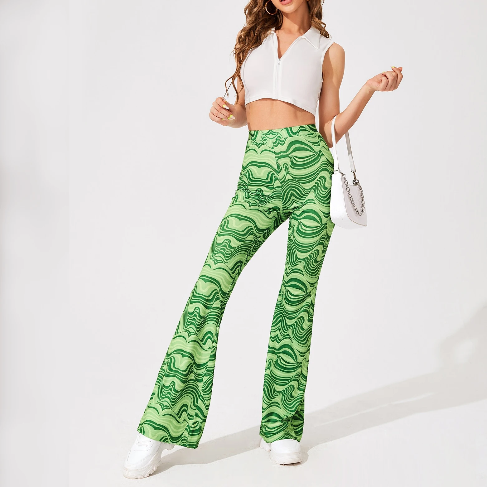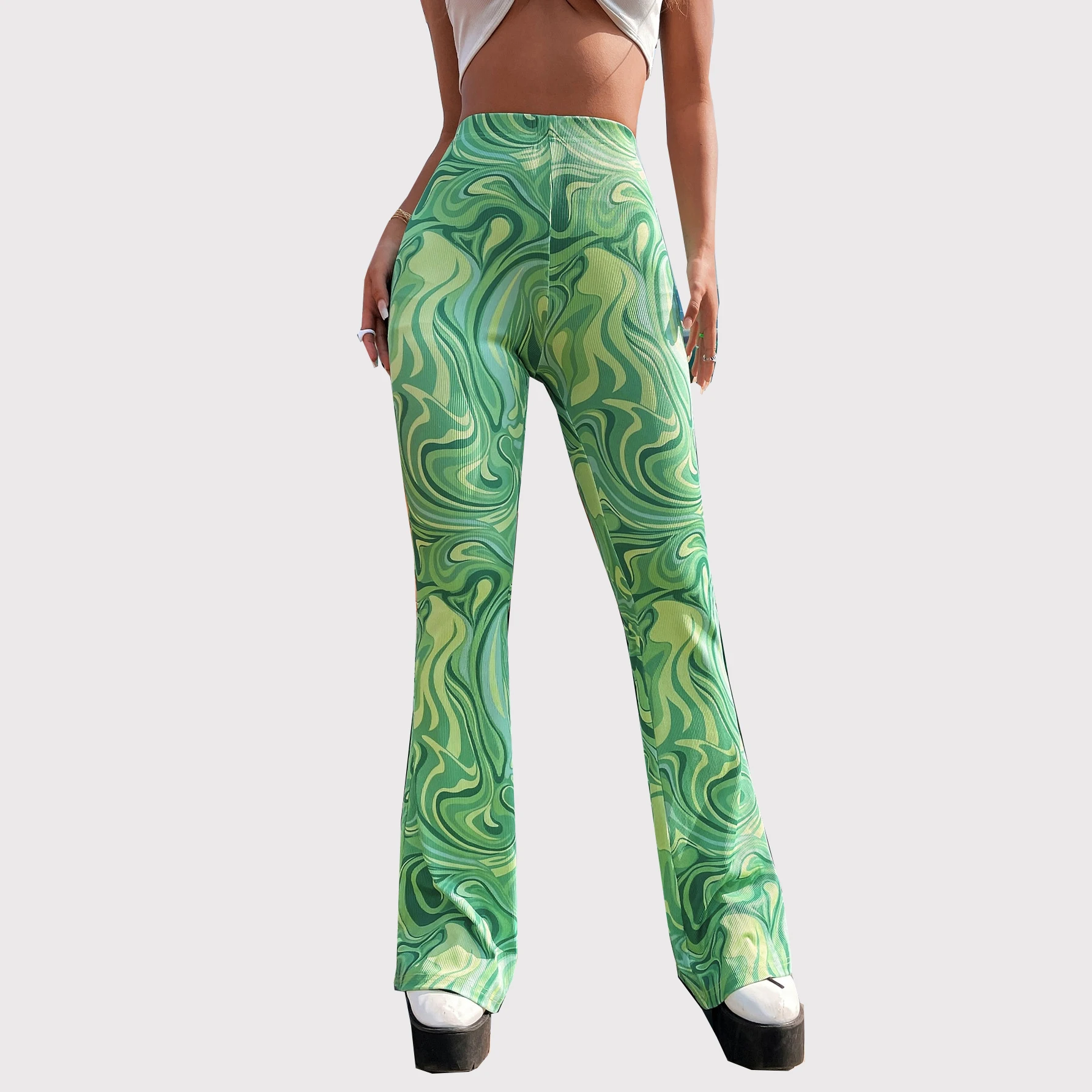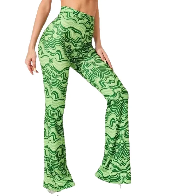 Casual High Waist Tight Full Print Trousers Women's Flare Leg Pants