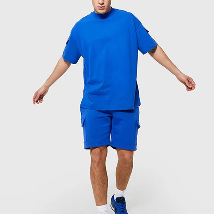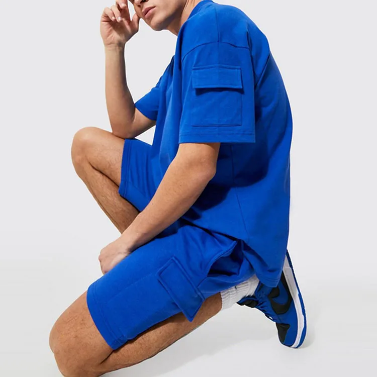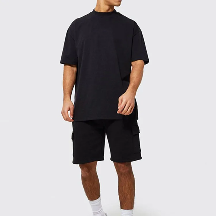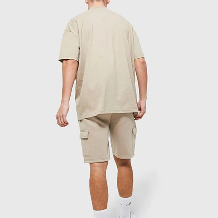 Plus Size Men's Elastic Waist Set - 100% Cotton T-Shirt & Cargo Shorts, Wholesale with Custom Logo