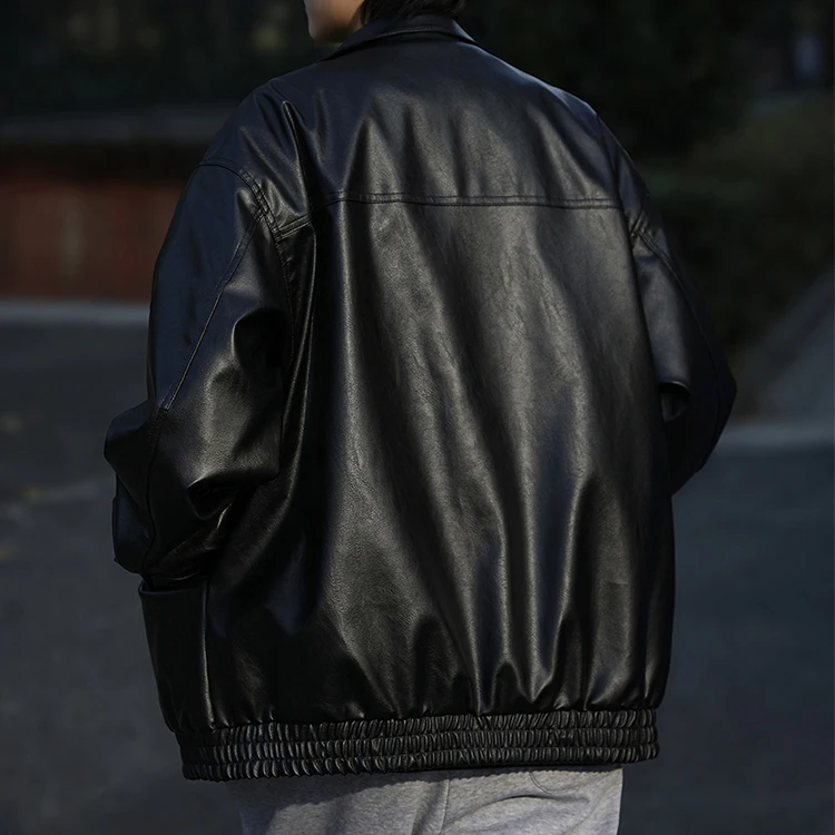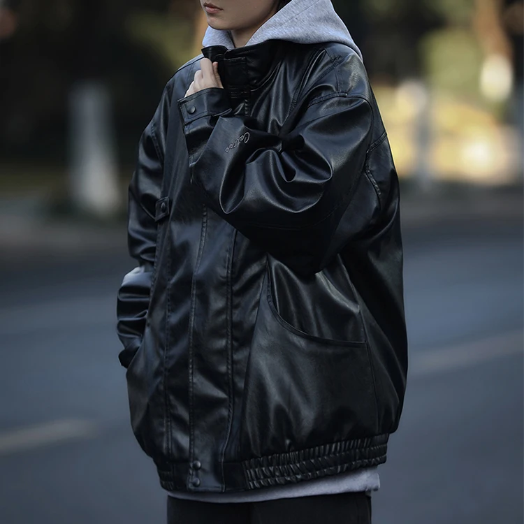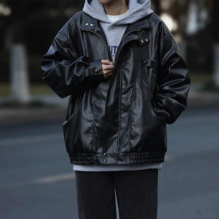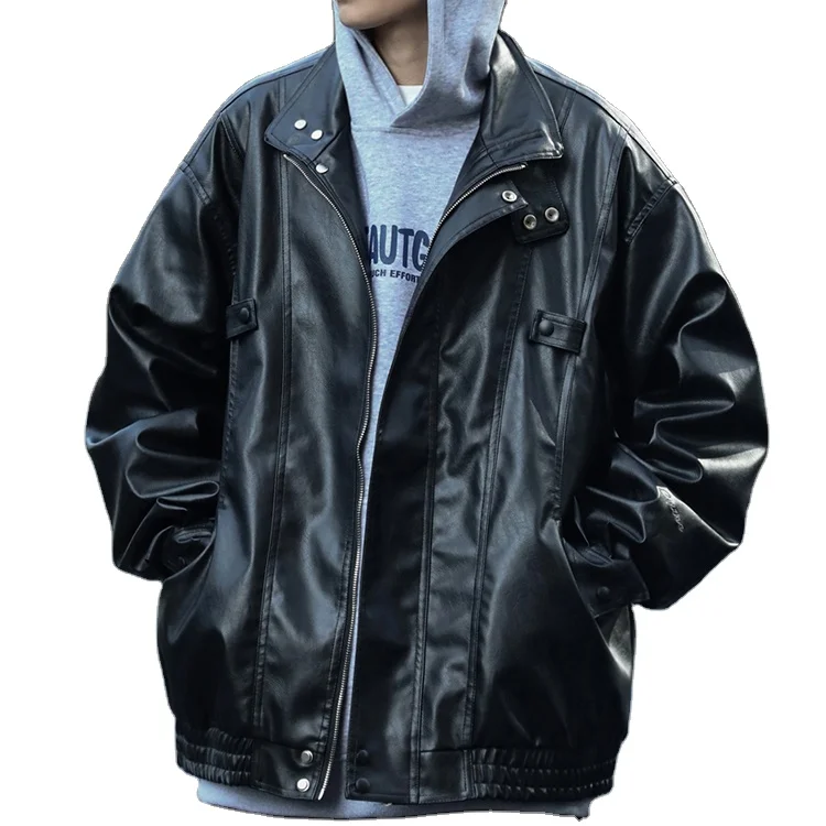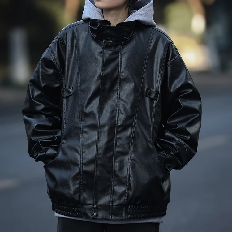 Vintage Men's Oversized Pilot Stand Collar PU Leather Jacket