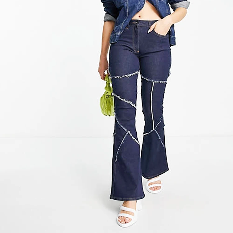 Custom Women Exposed Seam Flare Jeans Calcas Feminina Jeans Alta Women Pant Female Denim Oversized Wideleg Jeans
