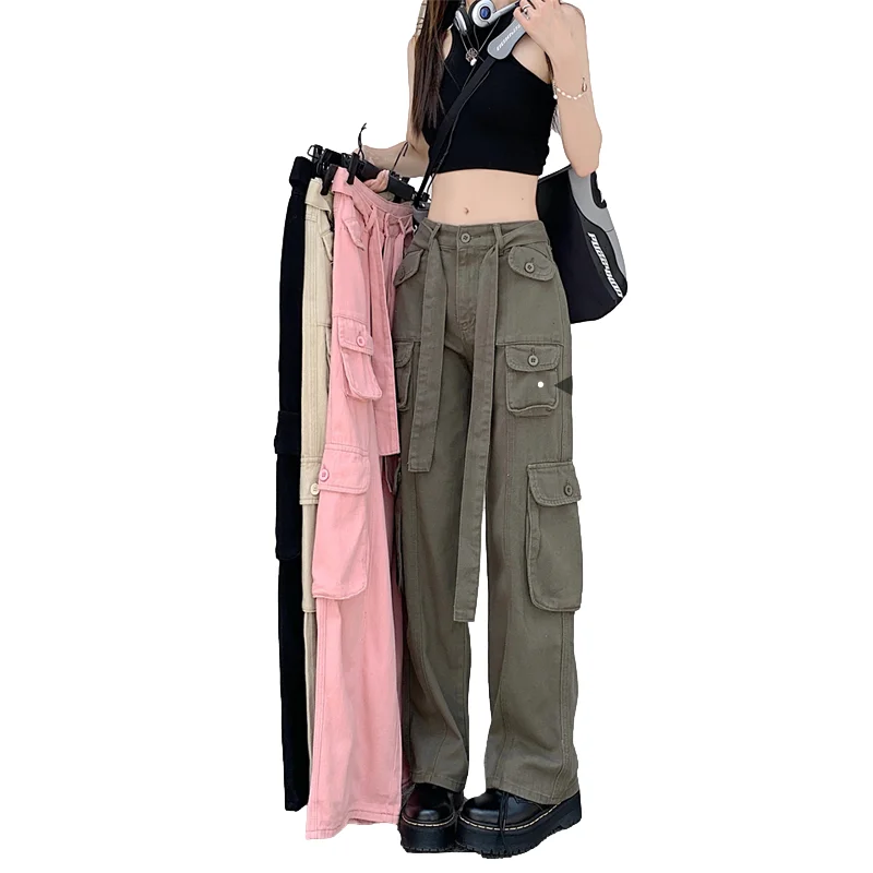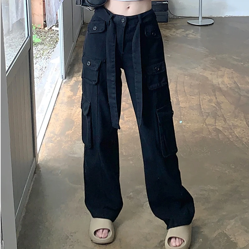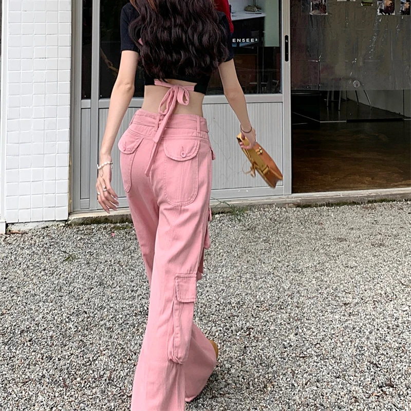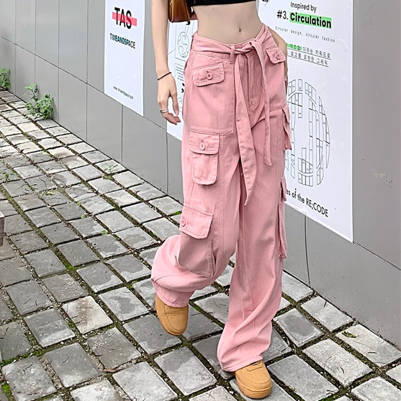 Custom Ladies Baggy Pant High Waist Fashionable 6 Pocket Denim Jeans Pantalones Women's Cargo Jeans