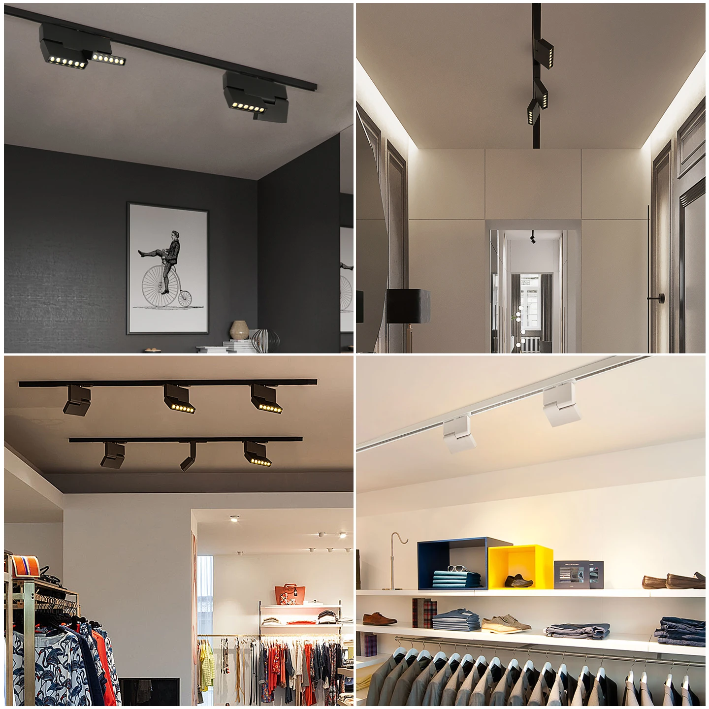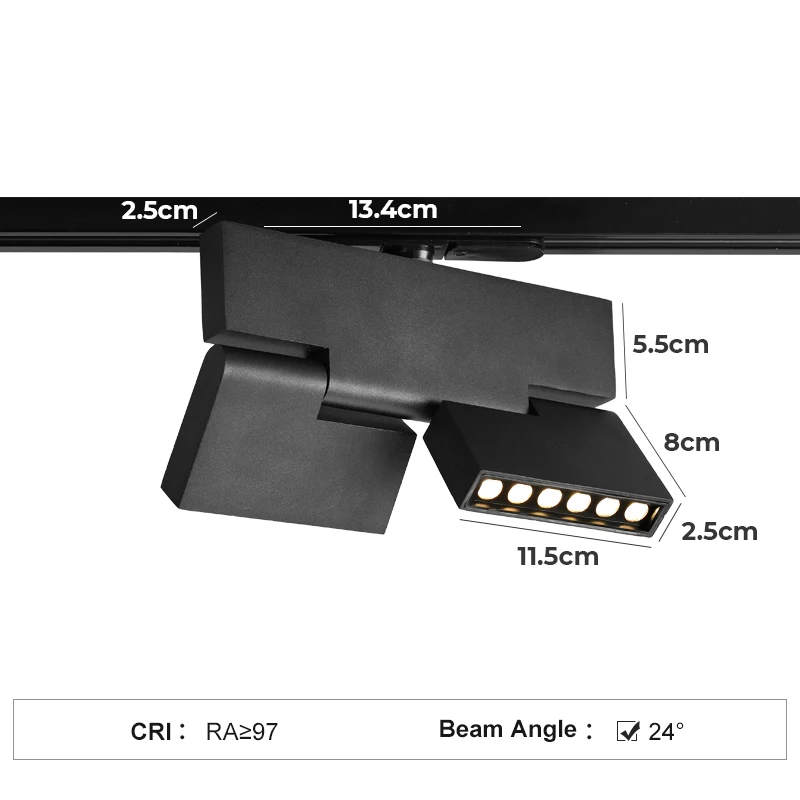 White Black COB 1/2 Head Track Foldable Grille Lights Ceiling 12W/24W Magnetic Adjustment Direction 180° Aluminum for Indoor