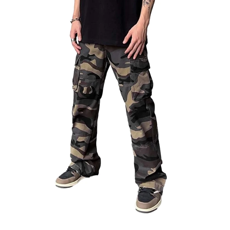 Custom Men Printing Cotton Casual Cargo Pants Multi Pockets Work Pants Outdoor Hiking Pants