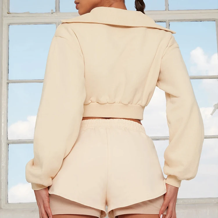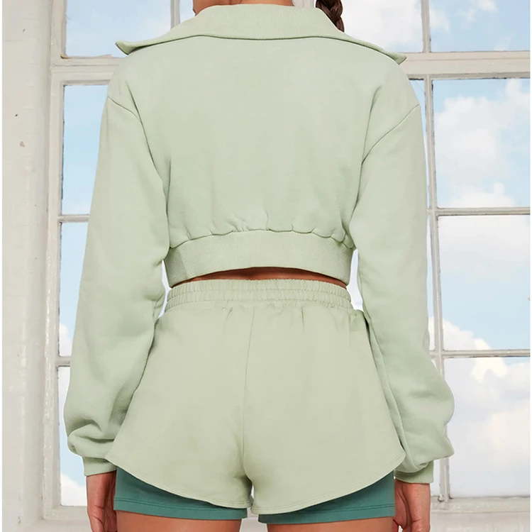 Custom Logo Half Zipper Cropped Sets 2 in 1 Shorts Sets Tracksuit for Women