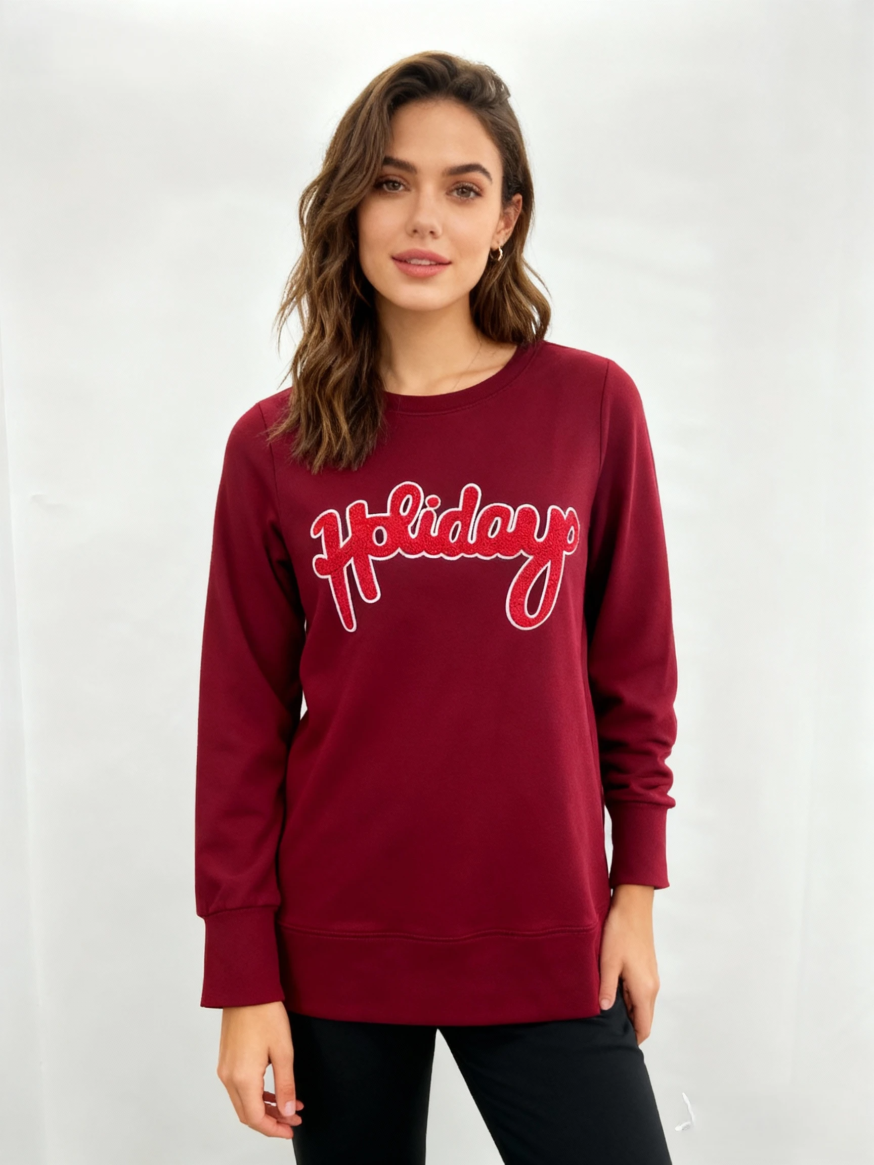 High Quality Women's Crewneck French Terry Breathable Cotton Sweatshirt Oversized Custom Logo Embroidered Letter Design Vintage