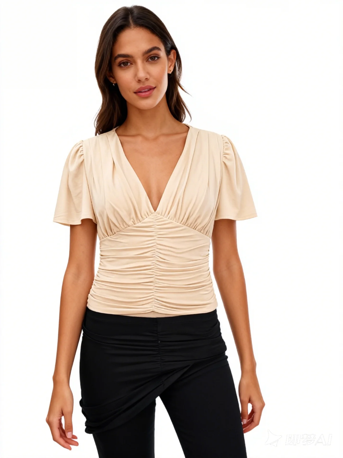 ZYHT 82024 White Blouse with Ruffled Cap Sleeves V-Neck Blouses Et Chemises Pour Femmes White Blouses for Women