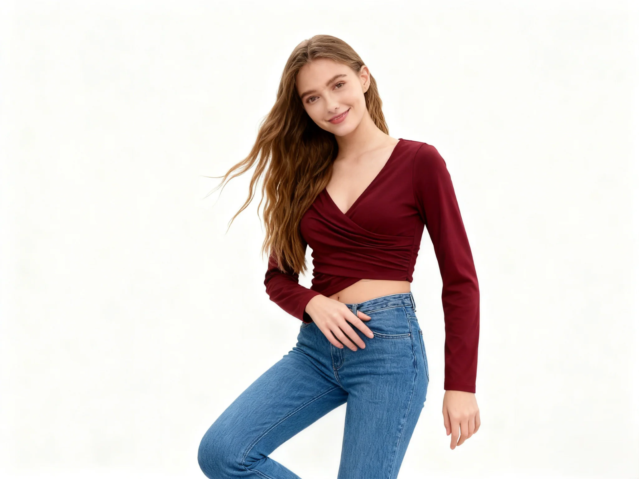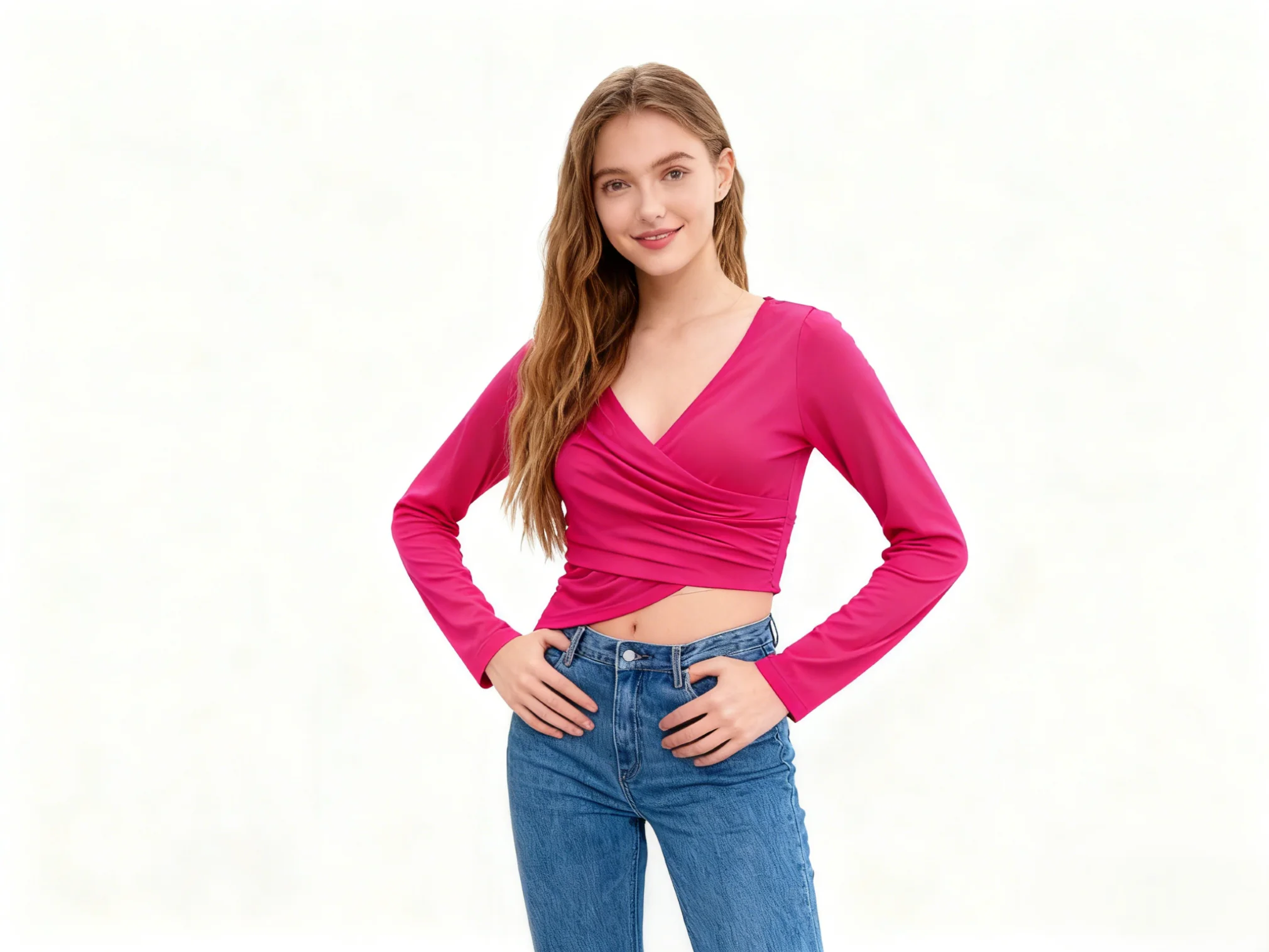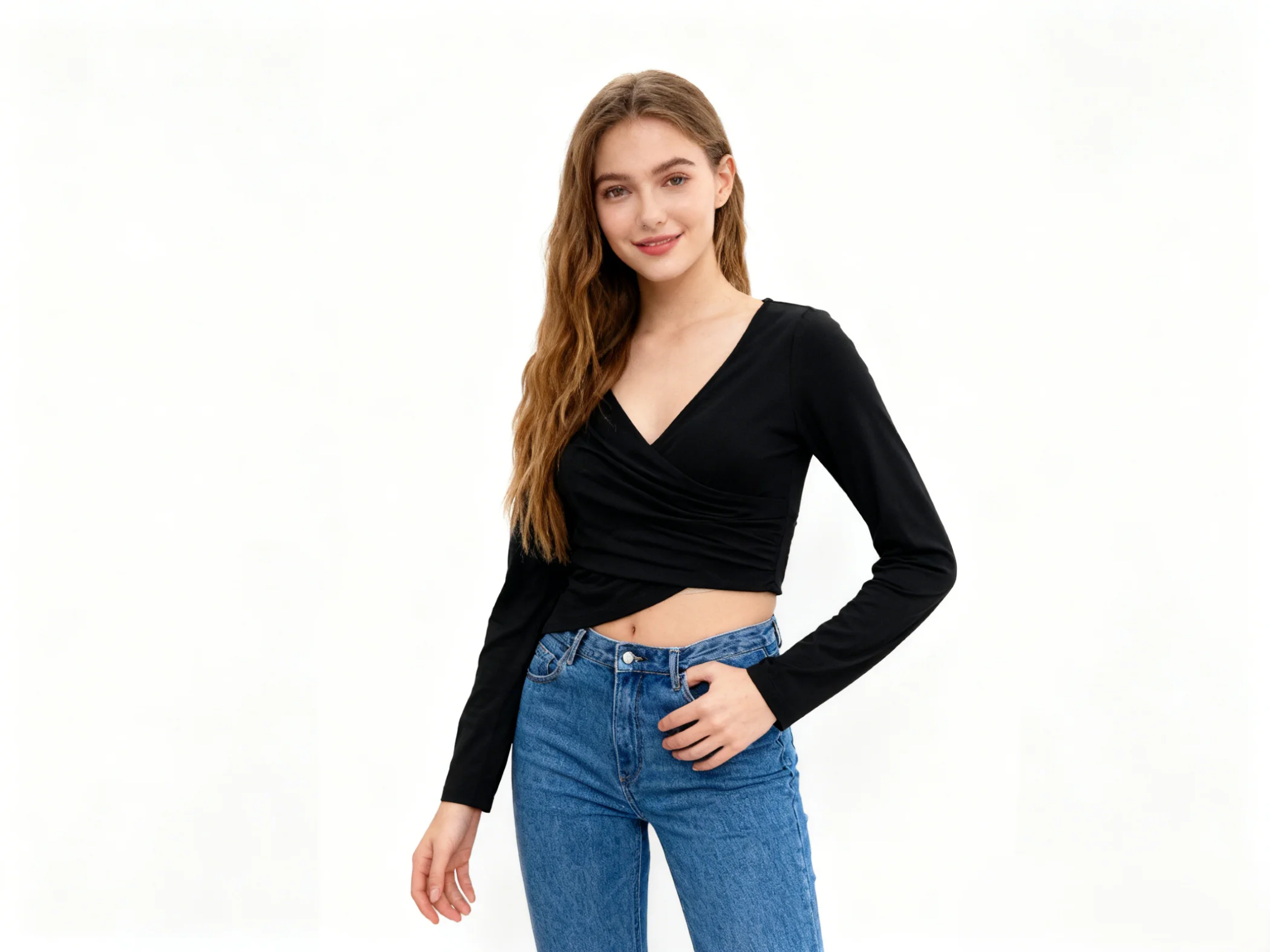 Women Fitted Shirt Soft Stretch Crop Tops High Quality Fashion Cross V Neck Cinched Waist T Shirt