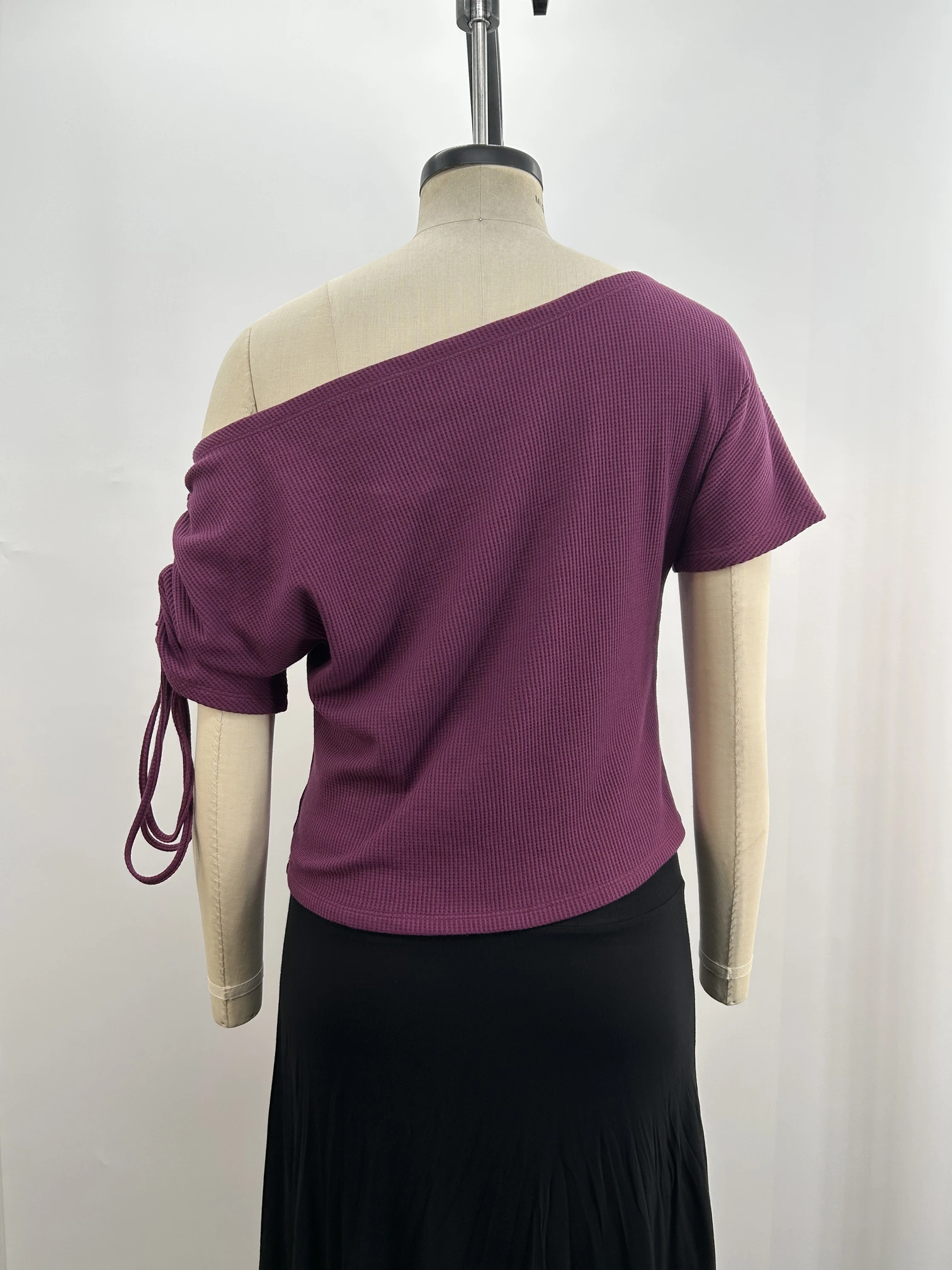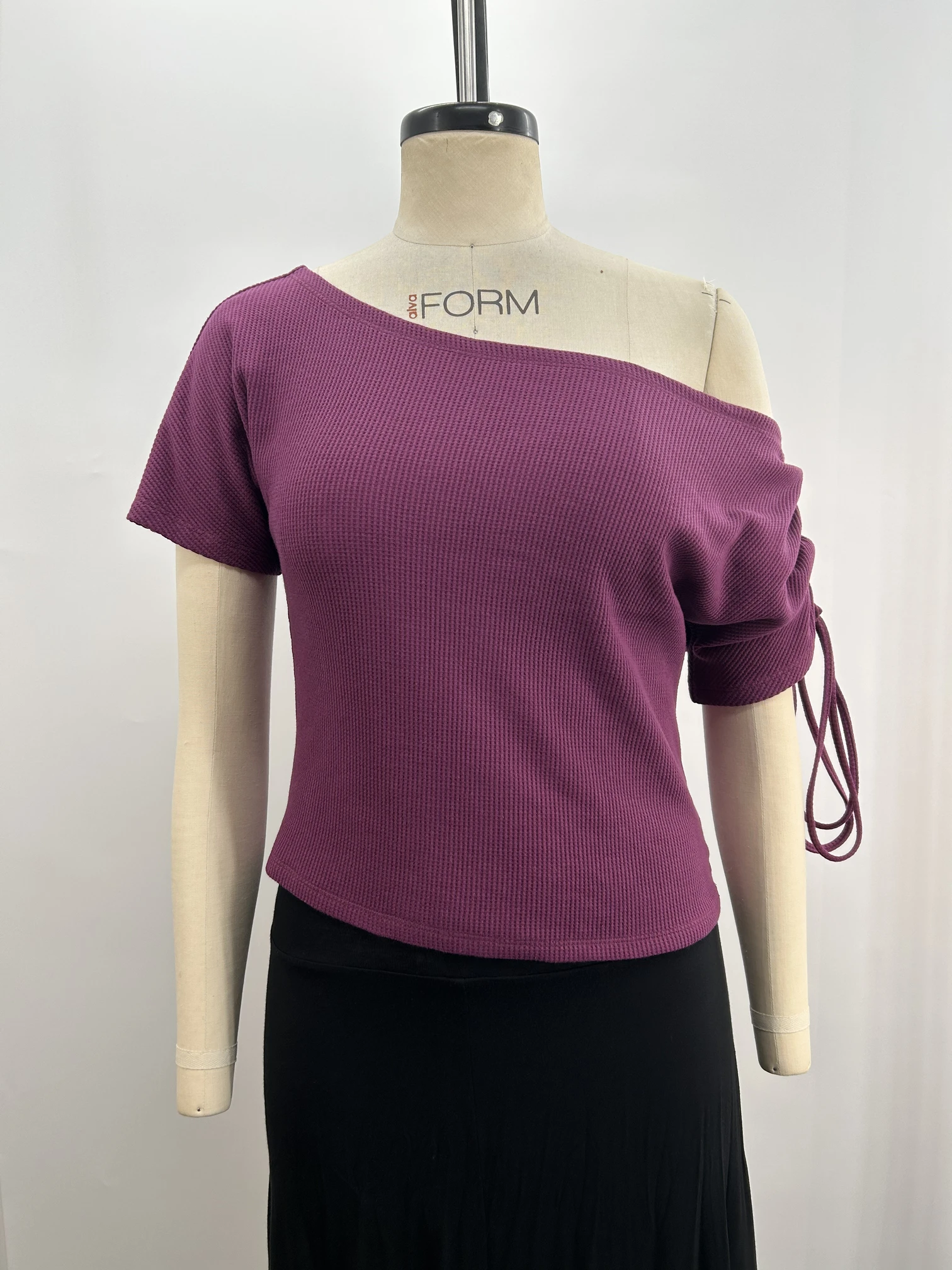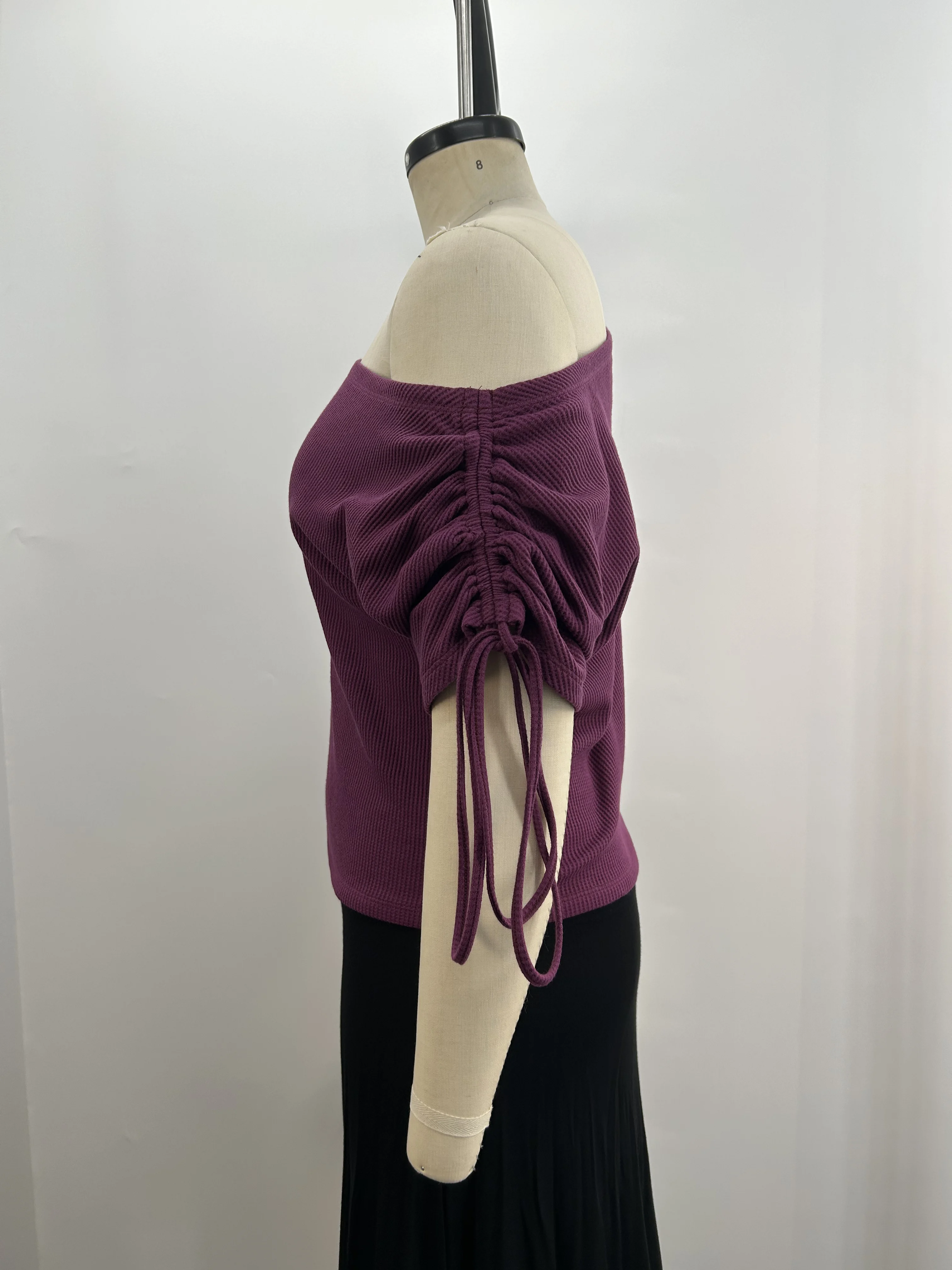 Women's Fashion TShirt Off Shoulder Ruched Short Sleeve Crop Top Casual Knit T Shirt