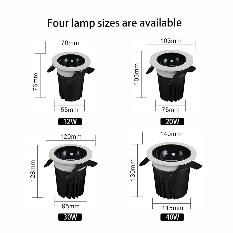 75mm20W Modern Full-spectrum Eye-protecting Led Recessed Spotlight Anti-glare Design for Office and Home Ceiling Applications