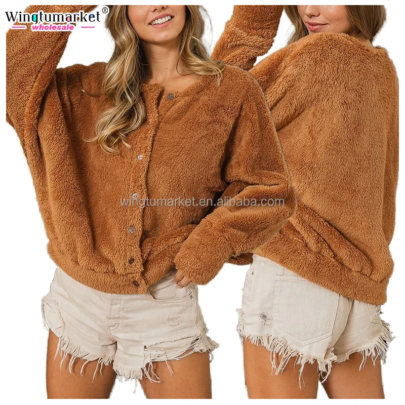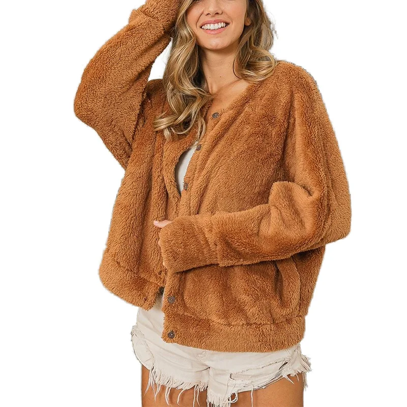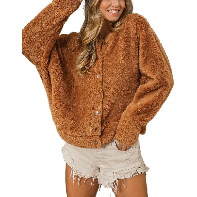 Trendy Casual Jacket Solid Color Long Sleeve Drop Shoulder Autumn Winter Women Cardigan