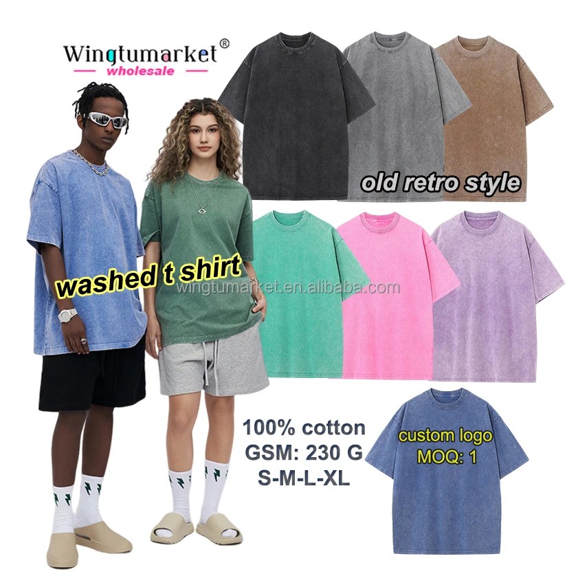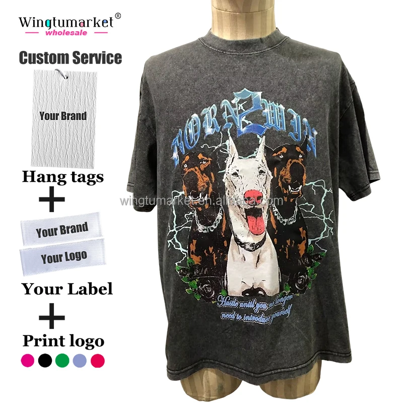 Custom Graphic Vintage Washed Tees Heavyweight Unisex Men Tee Shirts Blank 100% Cotton Women Acid Wash t Shirt