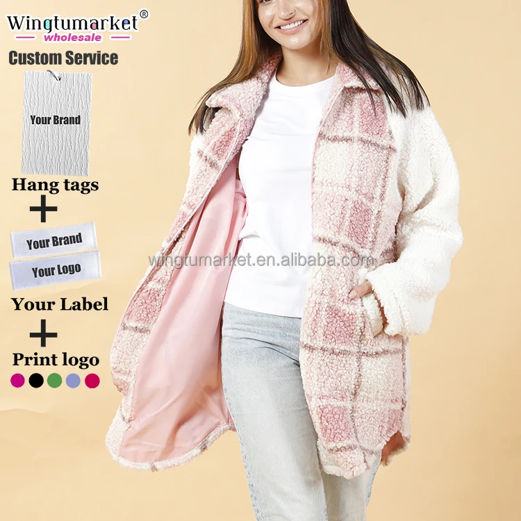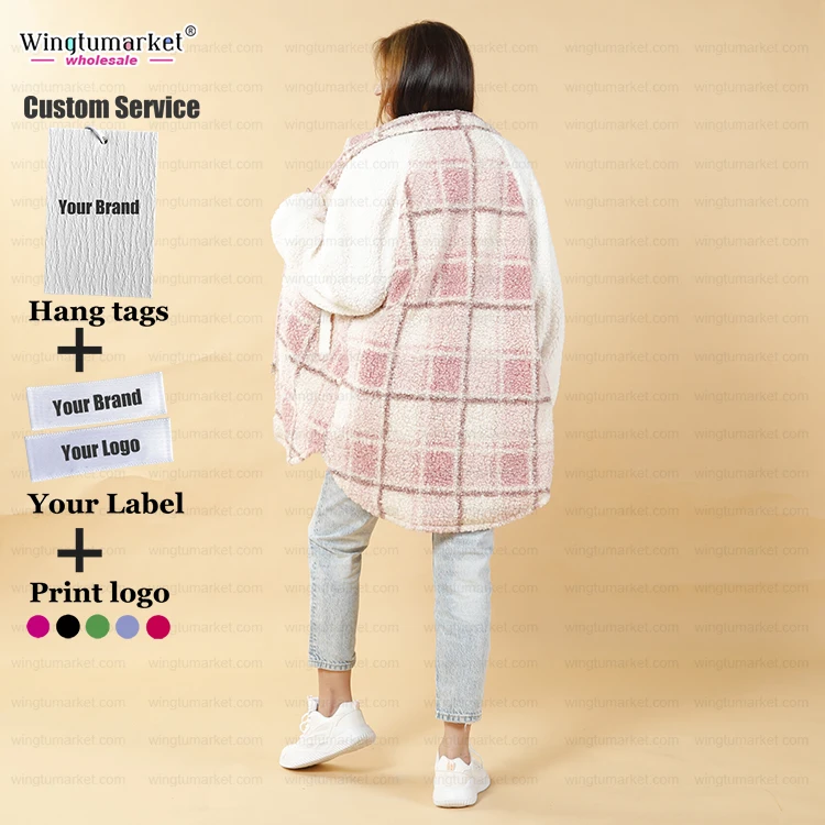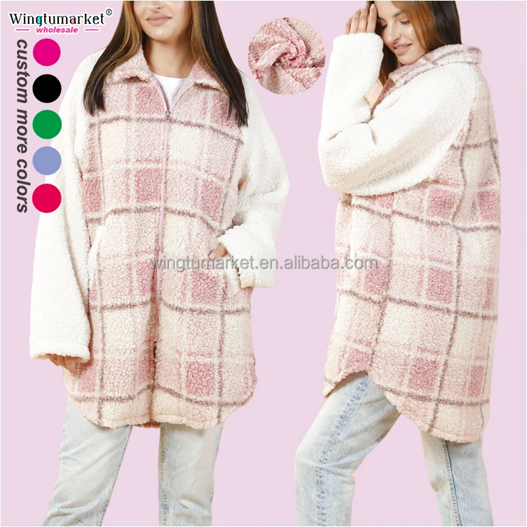 Winter Coats Ladies Custom Private Label Zipper Pockets Long Sleeve Shacket Plus Size Fleece Jacket Coat for Women