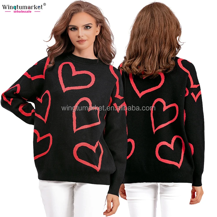 Winter Warm Jumper Valentine Knit Sweater Pullover Heart Designer Oversized Jacquard Plus Size Knitted Sweaters for Women