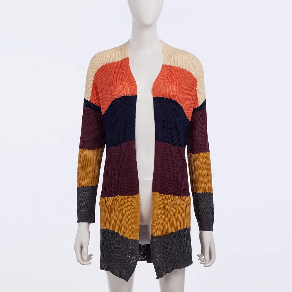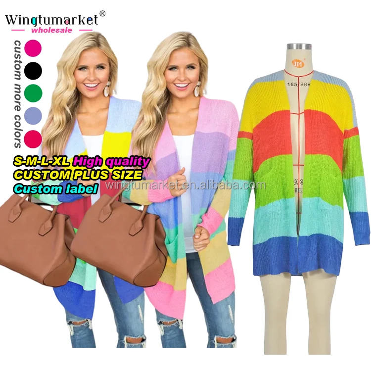 Custom Fashion Rainbow Cardigan Sweaters Women Loose Patchwork Striped Loose Winter Color Block Ladies Sweater Cardigans