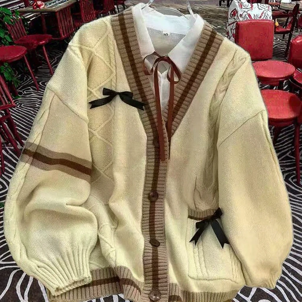 China V-Times Women Winter Fashion Loose Knit Casual Cardigan Sweater Coat for Girl Students with Button