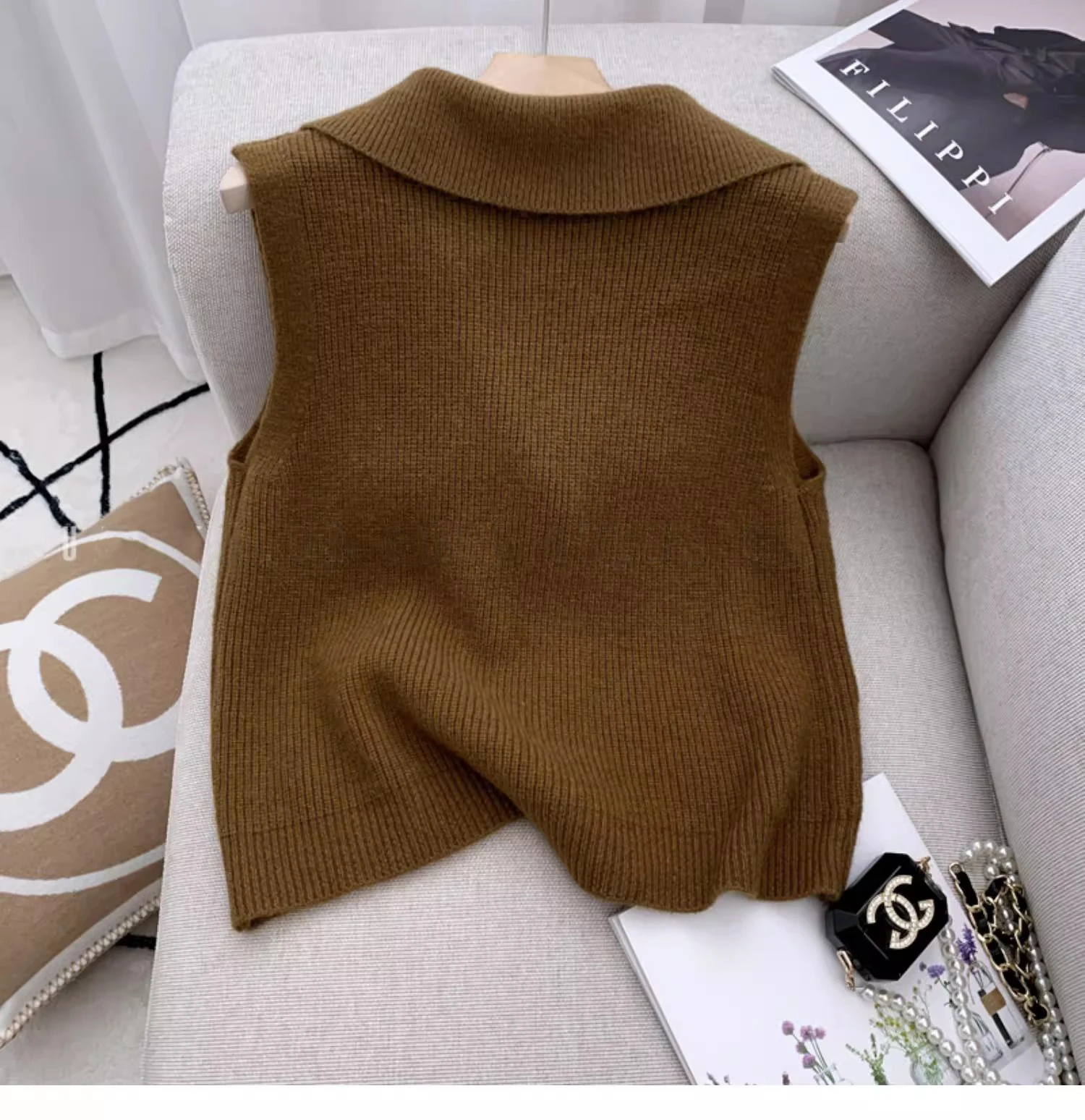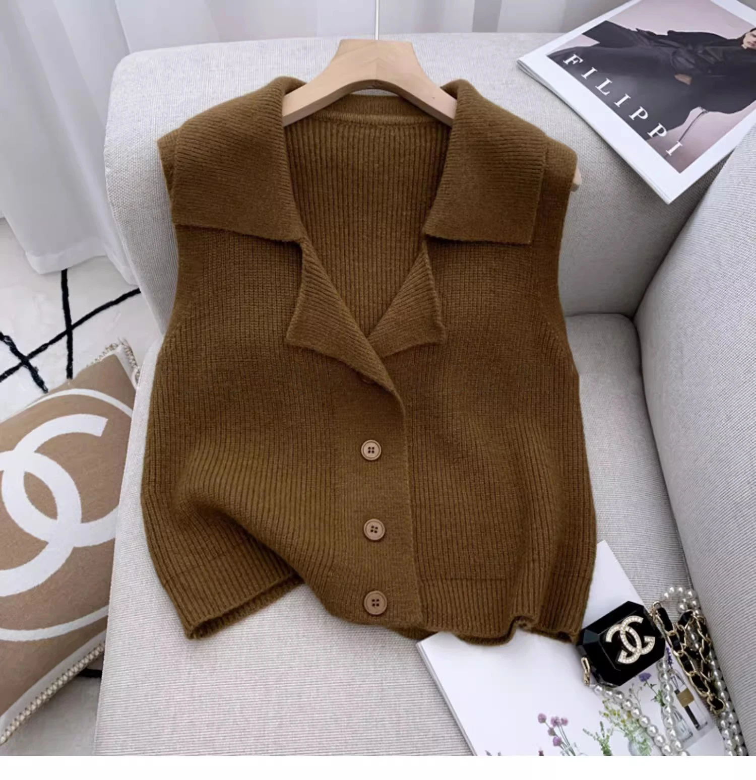 China V-times Vintage 2026 Spring Autumn Women's Short Knitted Cardigan Loose Sleeveless Sweater with Layered Vest Design