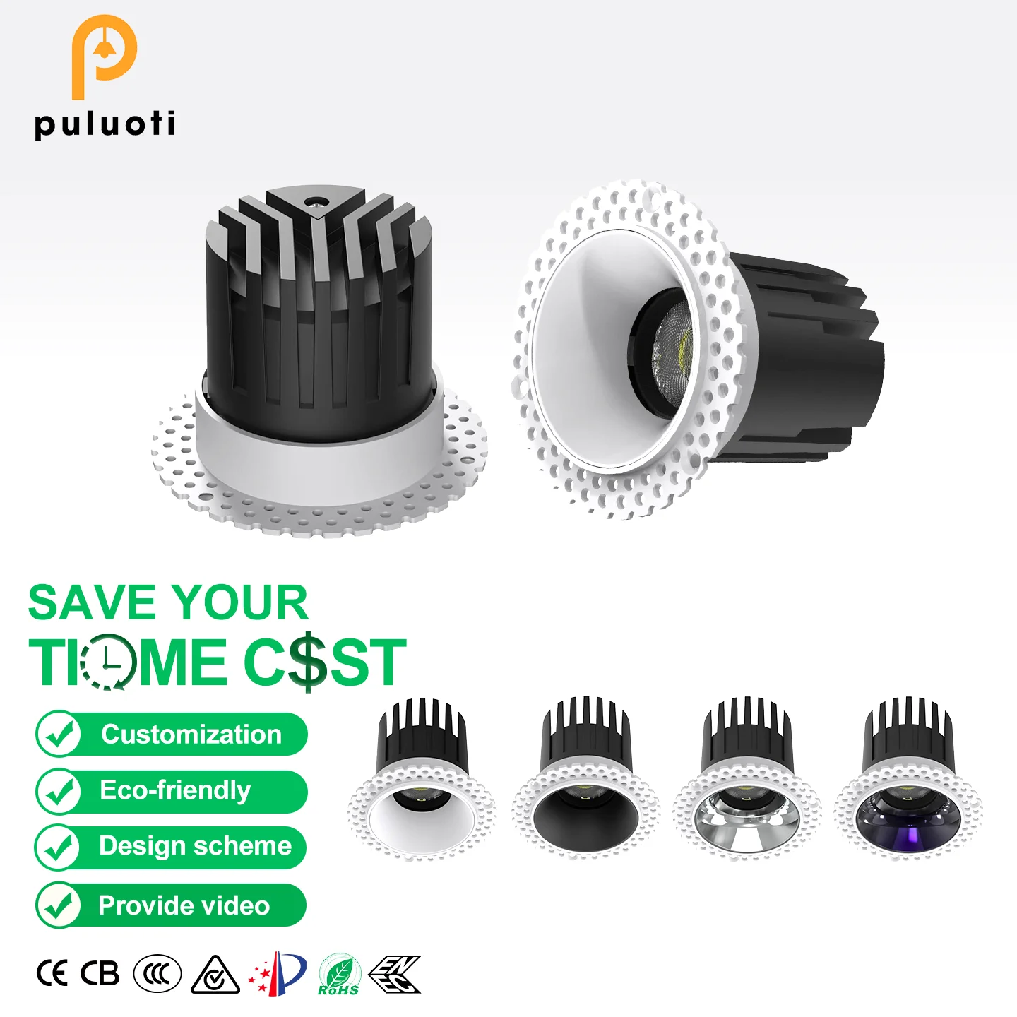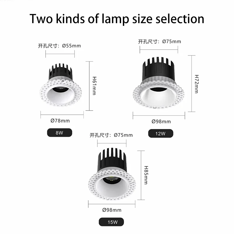 PULUOTI Modern Style Ceiling Embedded Frameless Spotlight 8W 12W 15W COB Light Full Spectrum Eye-friendly High-quality Spotlight