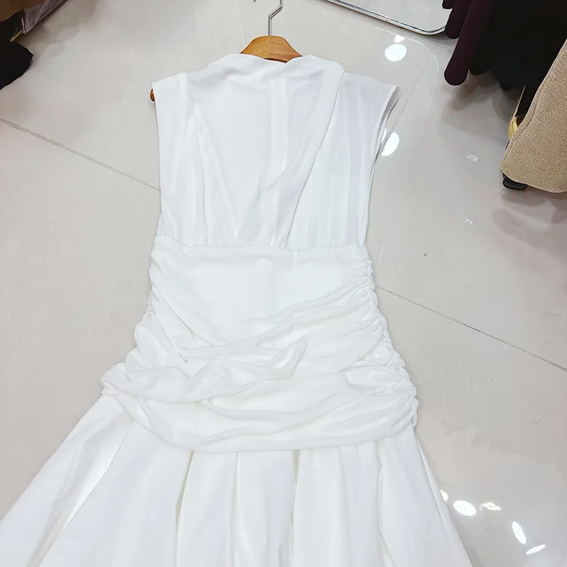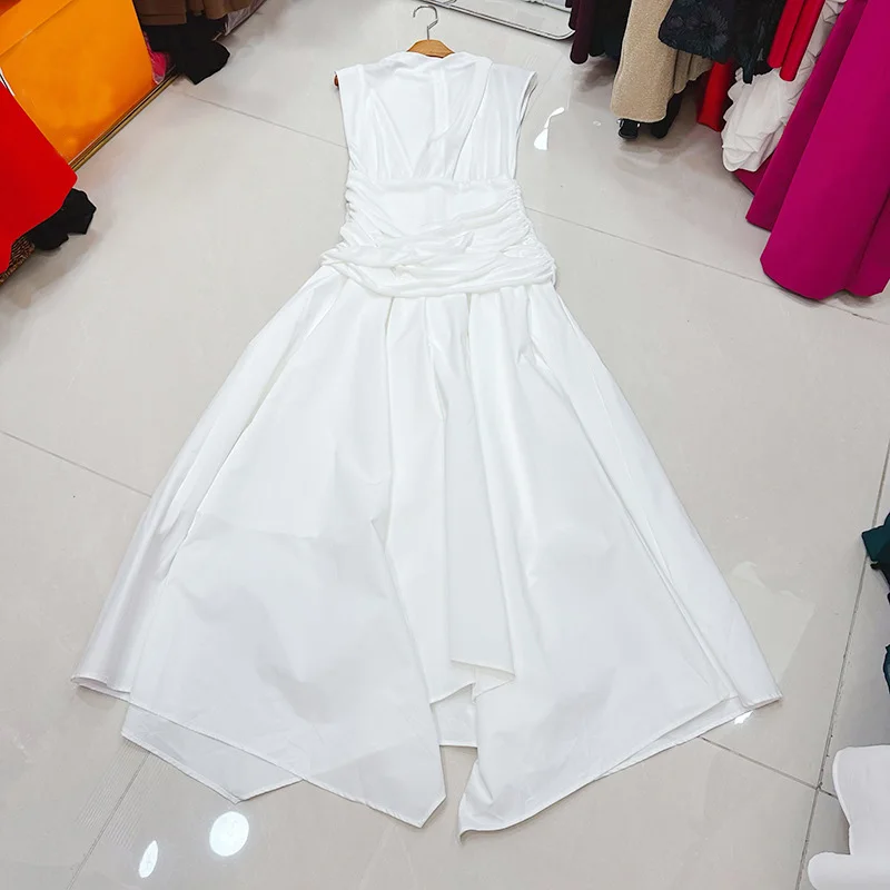 Factory Wholesale Spring Summer Midi Dress Women Design Fashion Sleeveless Patchwork Ruffles Irregular Party Female Clothing