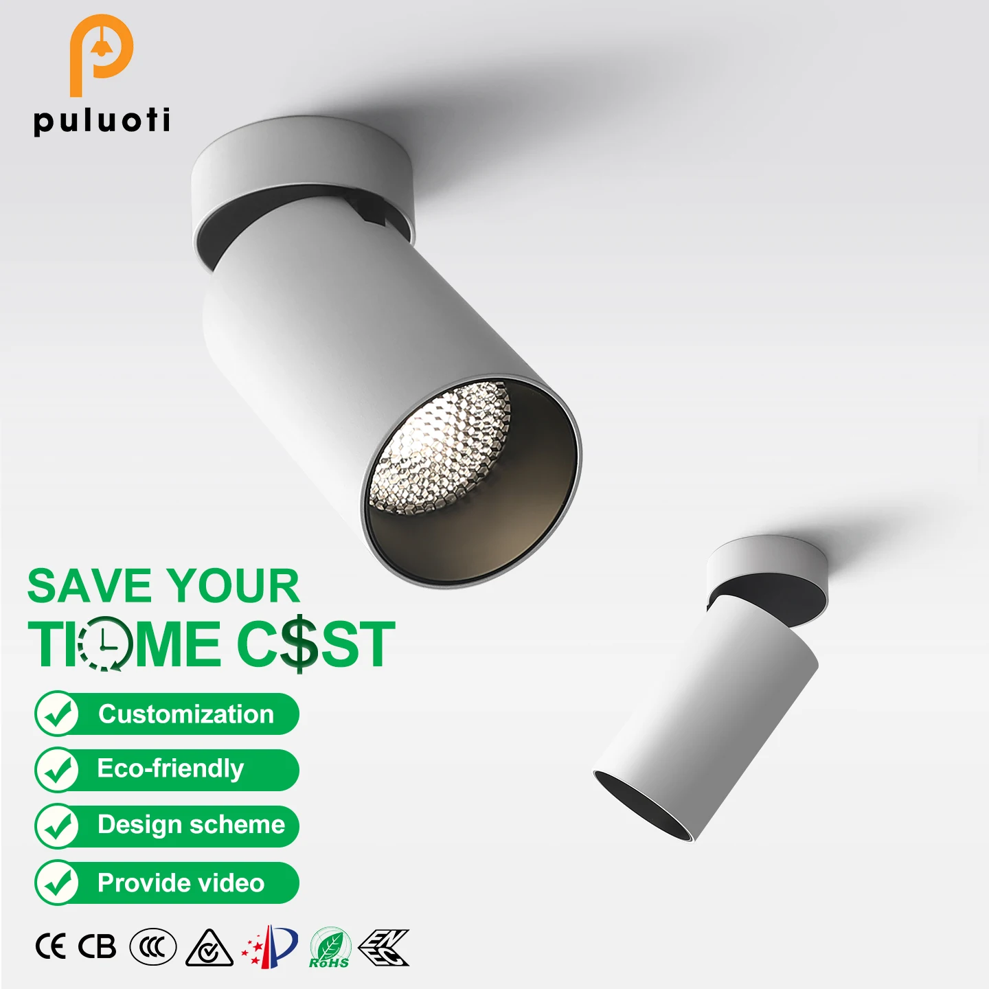 PULUOTI Led Ceiling Light Surface 10W Spotlights Folding up and Down 90° Logo Spot Light Downlight White for Indoor Restaurant