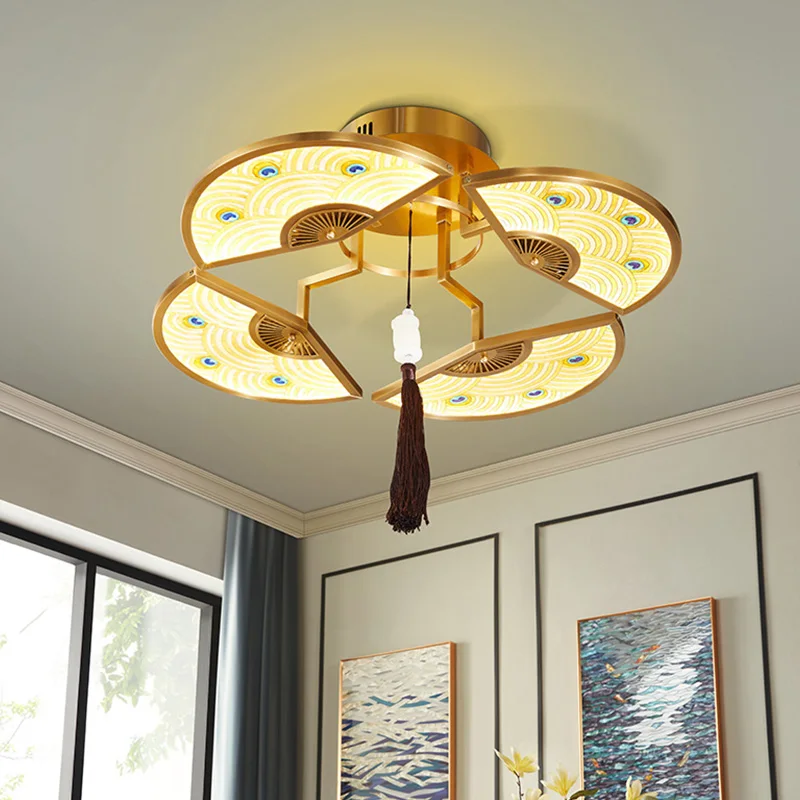 Enamel Colored New Chinese Style Bedroom Ceiling Light Luxurious and High-end Master Bedroom High-end Bedroom Light