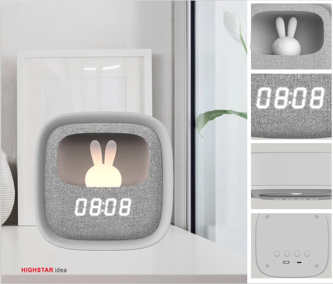 LED Rechargeable Digital Alarm Clock Night Light Smart Cute Bunny Night Light for Children Back School