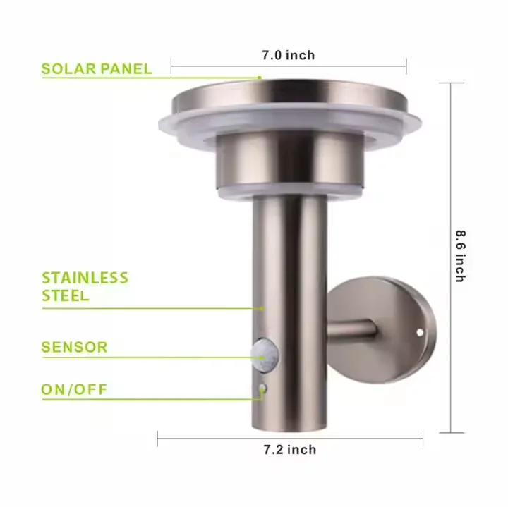 Vertak Out Door Led Solar Power Wall Light Stainless Steel Outdoor for Garden Wall Light
