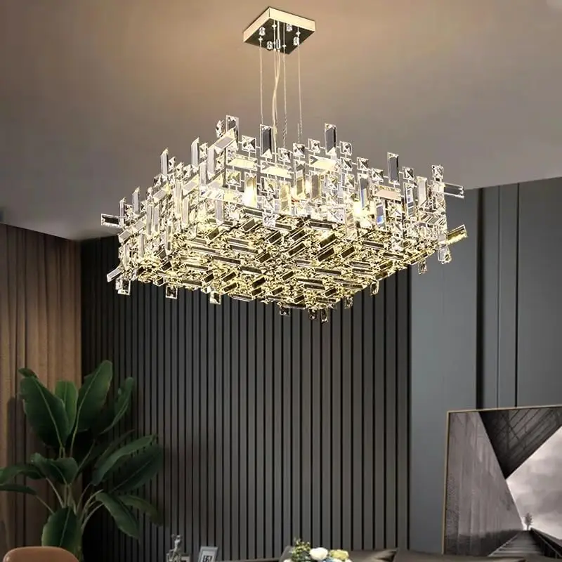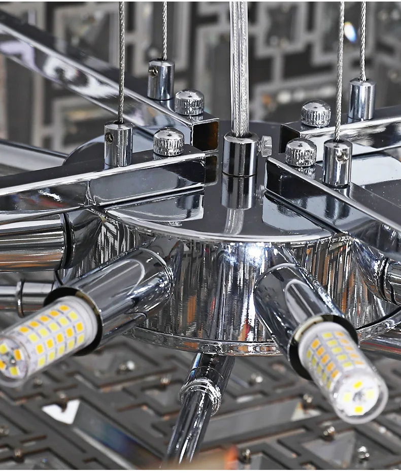 JACKSUN Elegant Rectangle Iron K9 Gray Crystal Led Chandelier Luxury Fixtures for Bar Club Dining Living Room Pendant Light