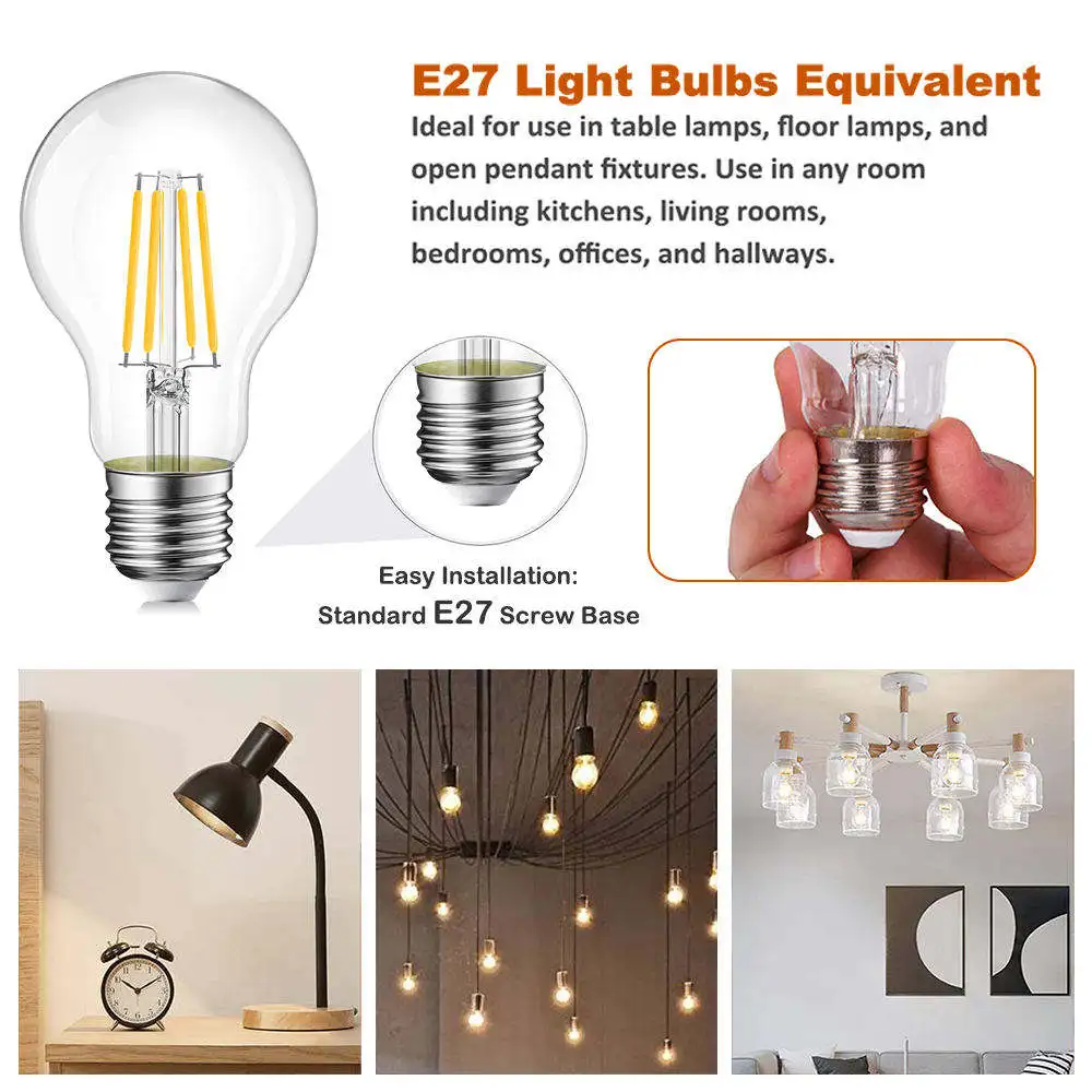 Vertak Led Manufacturers 3000K 4000K 6500K Bulb 4W 6W 8W 10W Led Bulb A60 E27 Filament Bulbs