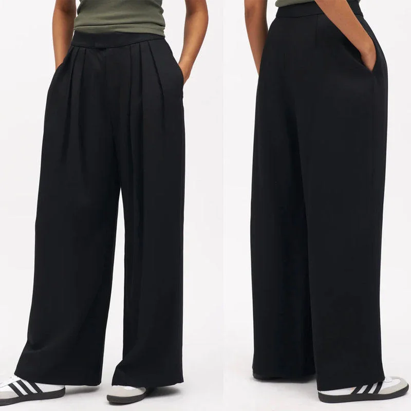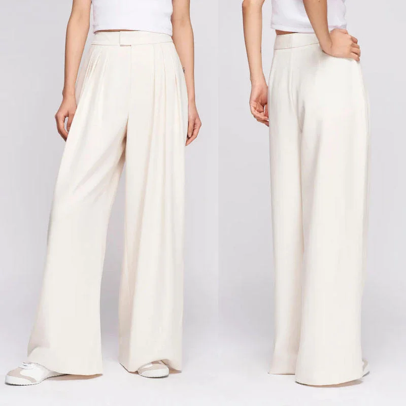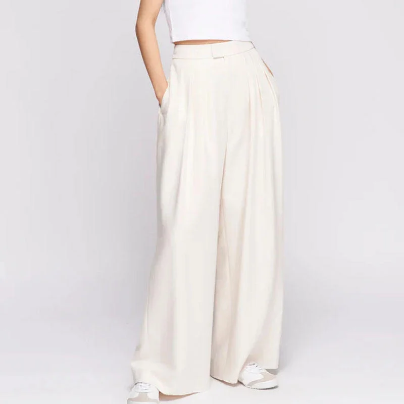 Wholesale Customized High Waist Casual Solid Pattern Button Detail Wide-Leg Pleated Plaza Pants Ladies Straight Jeans Breathable