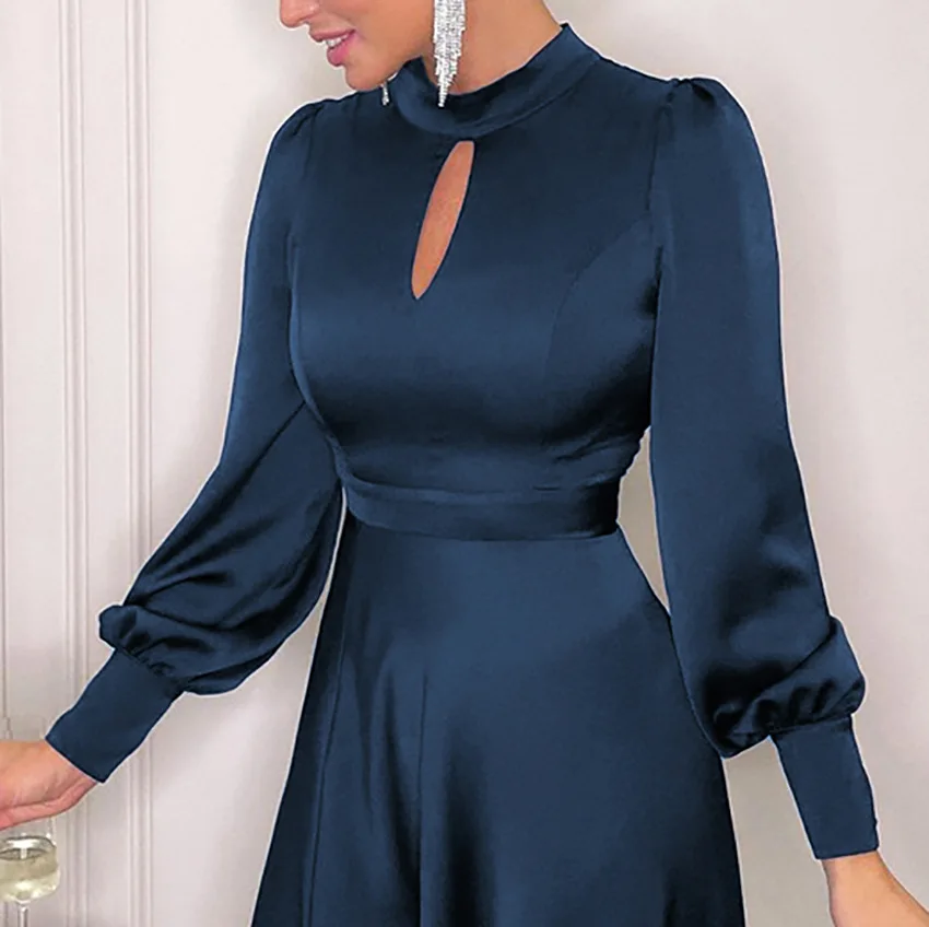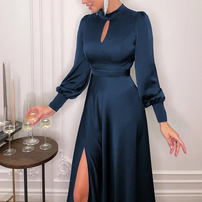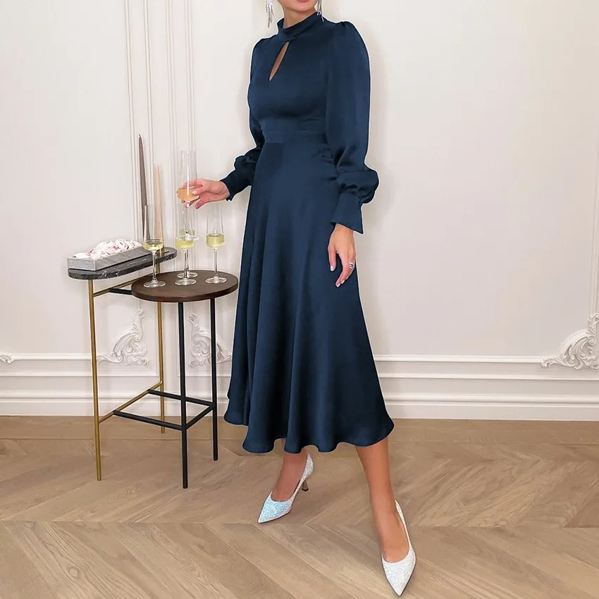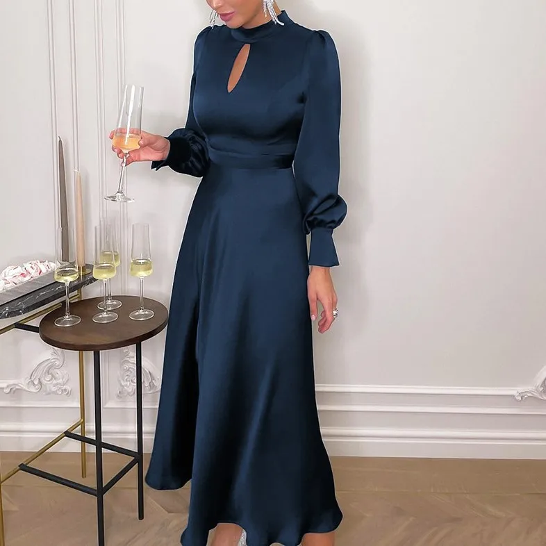 Autumn 2026 Fashion Design Satin Silk French Dress Women's High-waisted Long Dress Clothes Women Plus Size Dresses