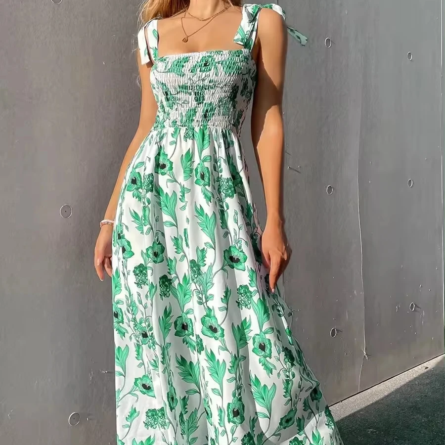 Elegant Summer Boho Kaftan Plus Size Floor-Length Maxi Dress Spaghetti Strap Printed Halter Woven Weave Sweet Casual Beach Dress