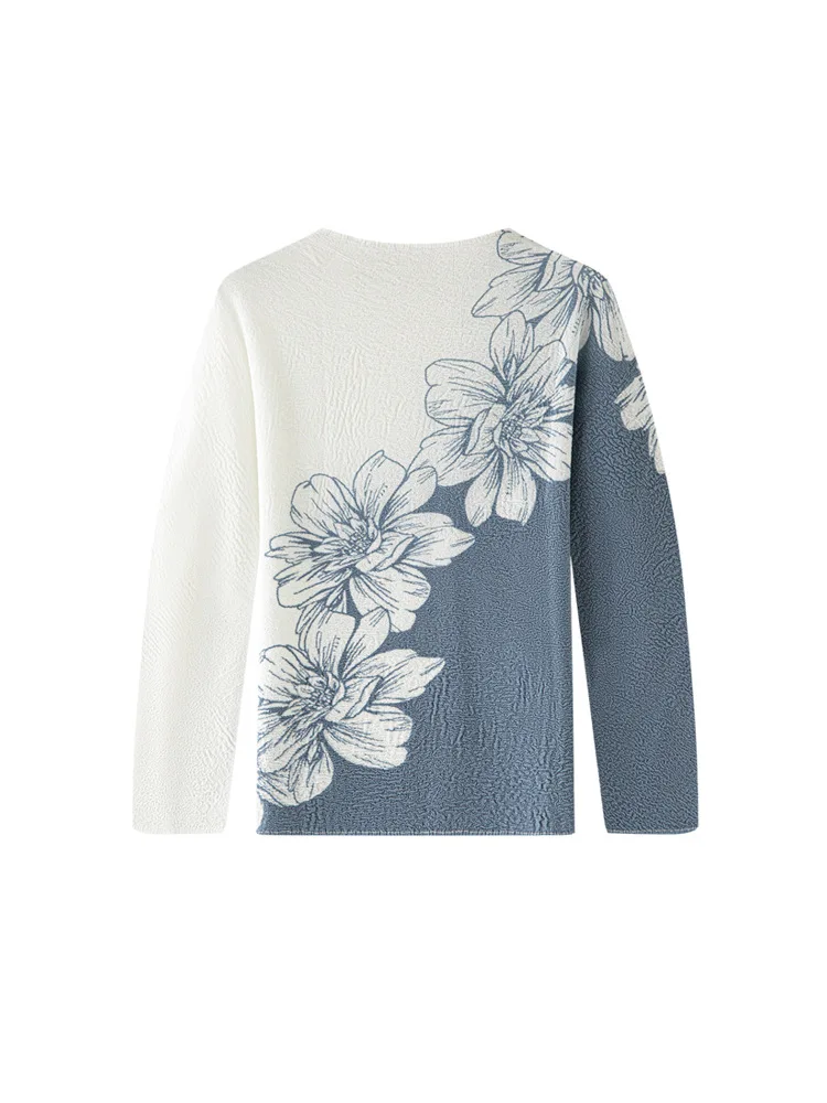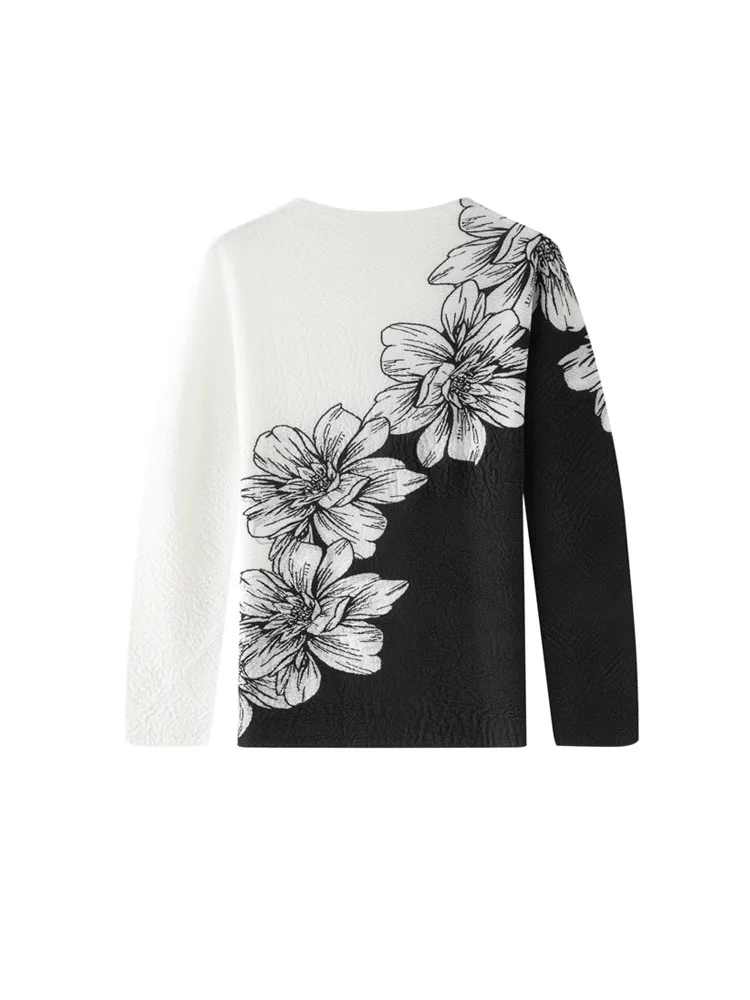 Miyake High-end Creative Printed Pleated Polyester Casual Top Women's Spring New Elegant Commuter All-match Long-sleeved T-shirt