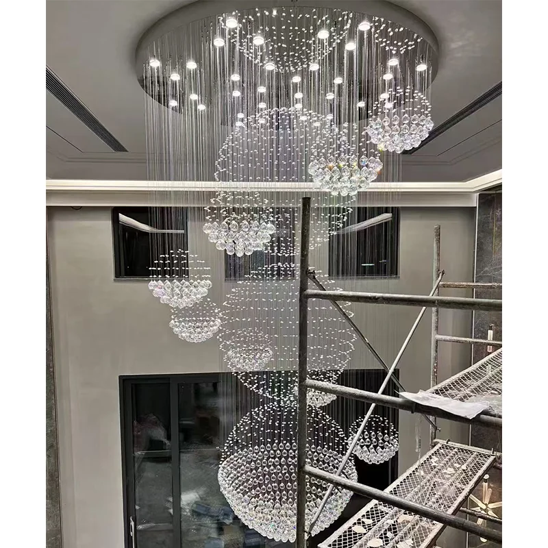 Zeal Lighting Long Stairwell Hanging Pendant Light Staircase Villa Duplex Stair High Ceiling Crystal Chandelier