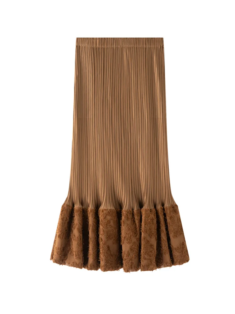 Miyake Vintage Beaded Anti-Wrinkle Super Good-looking Fashion High-end Niche Elegant Skinny Western Brown High Waist Skirt