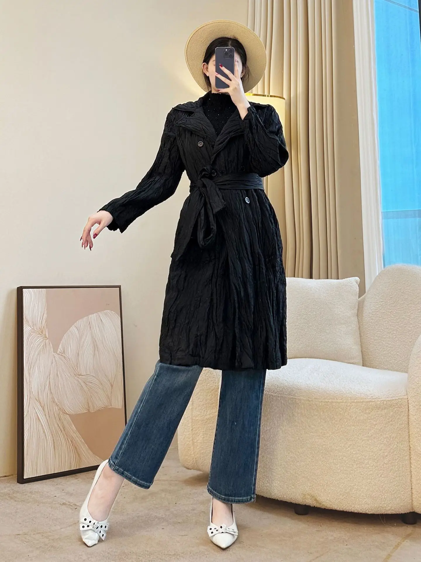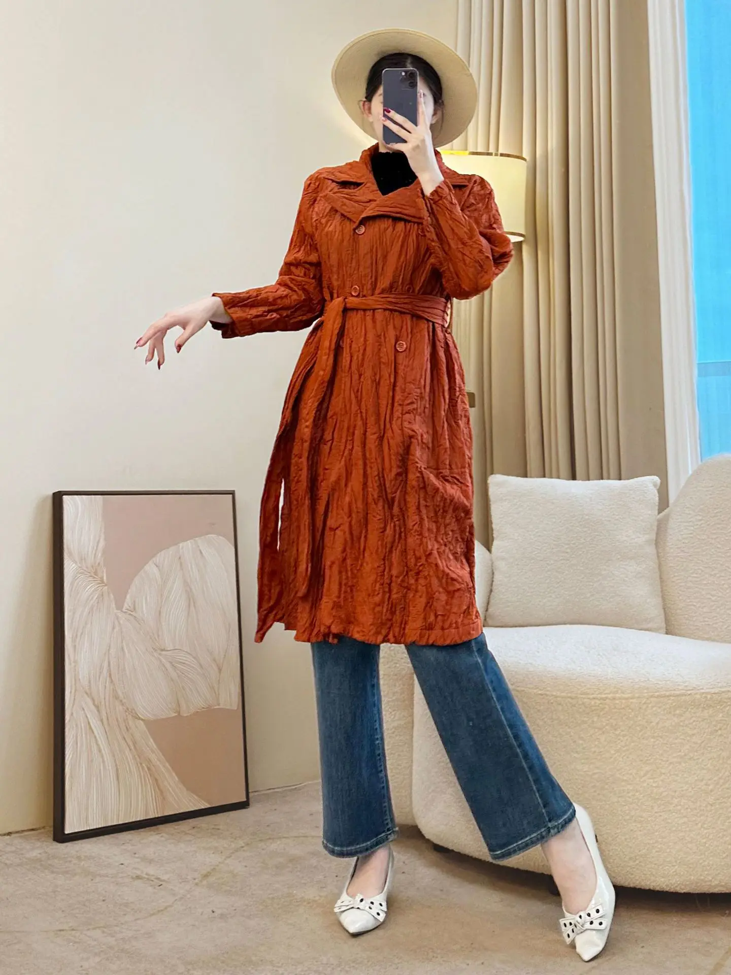 Women's Vintage Khaki Lace Trench Coat with Zipper Closure Flared Sleeves and Detachable Hat-Slim Waist Design