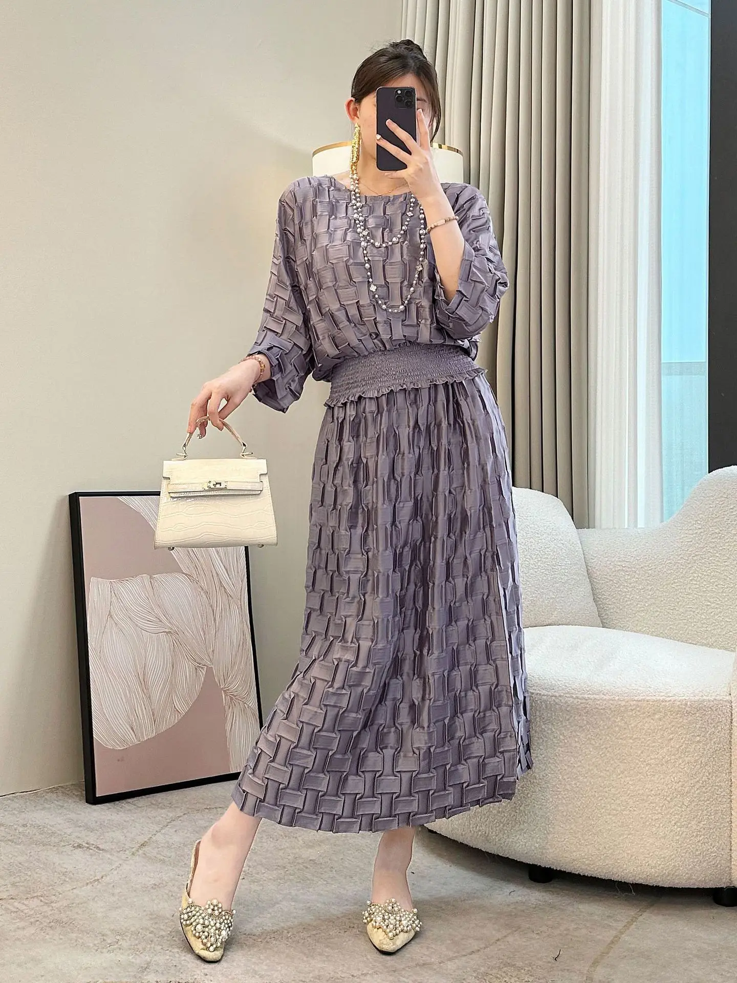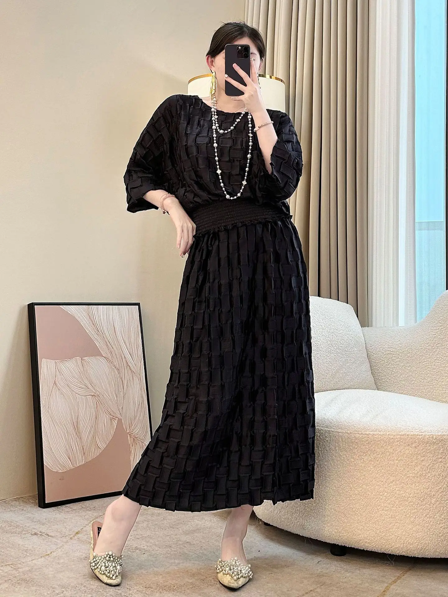 Women's 2026 New Spring Summer Large Size Light Luxury Leisure Temperament Two-Piece Set Fashion Pleated Suit Skirt Loose Solid